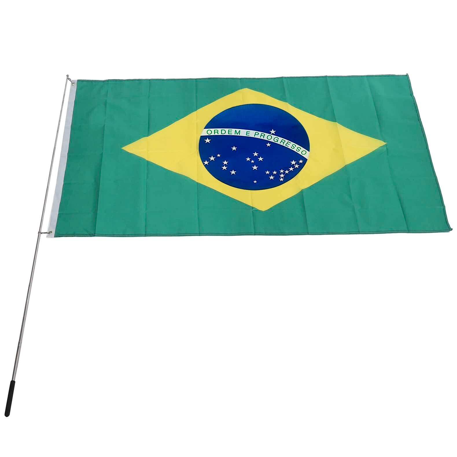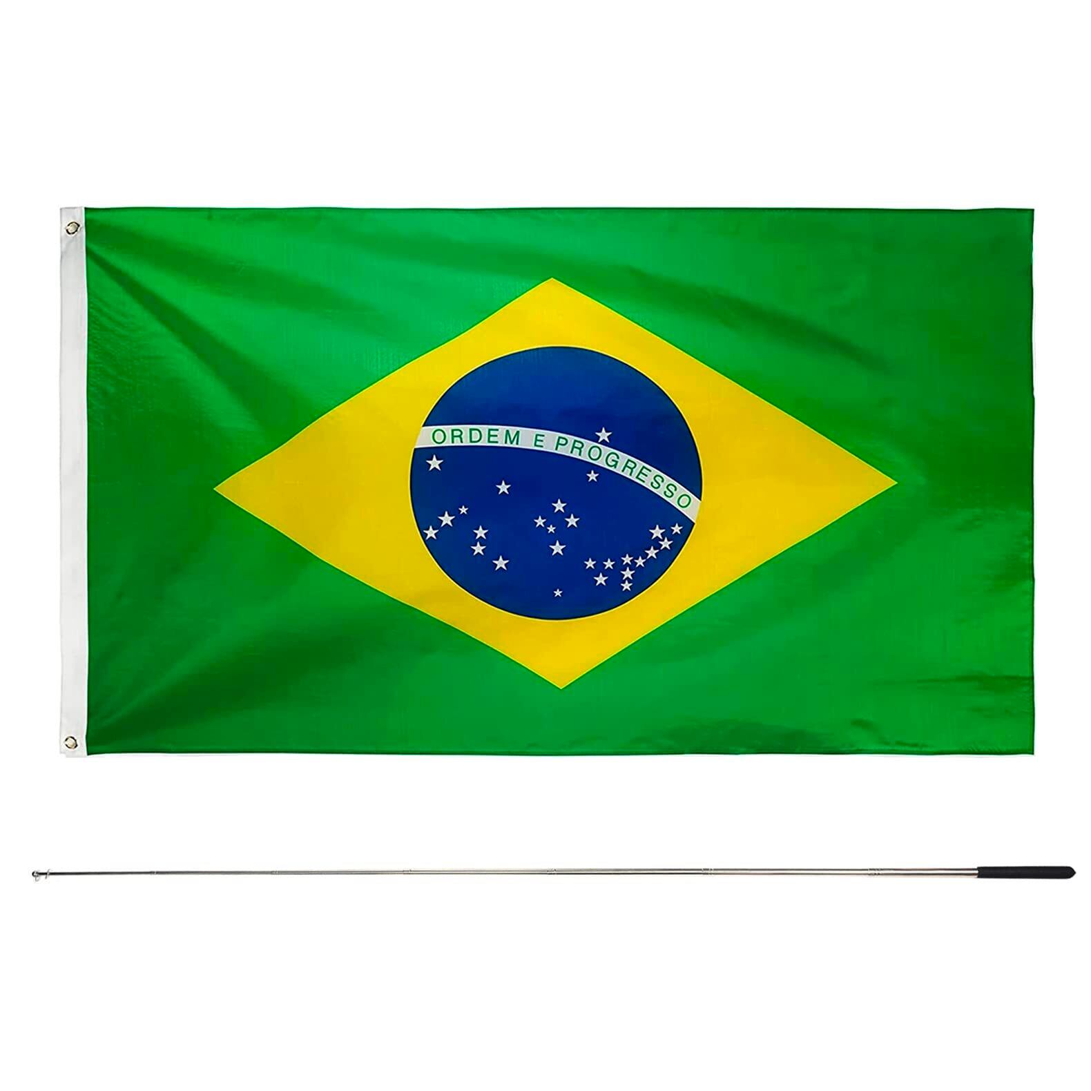 Difounmas 国旗セット ブラジル国旗 旗棒 伸縮式 フラッグサイズ 90×150cm 伸縮旗ポール 手旗棒 155cm 国際交流 フェスティバル イベント サッカー 体育 競技 代表応援用 文化祭 装飾 パーティ運動会用