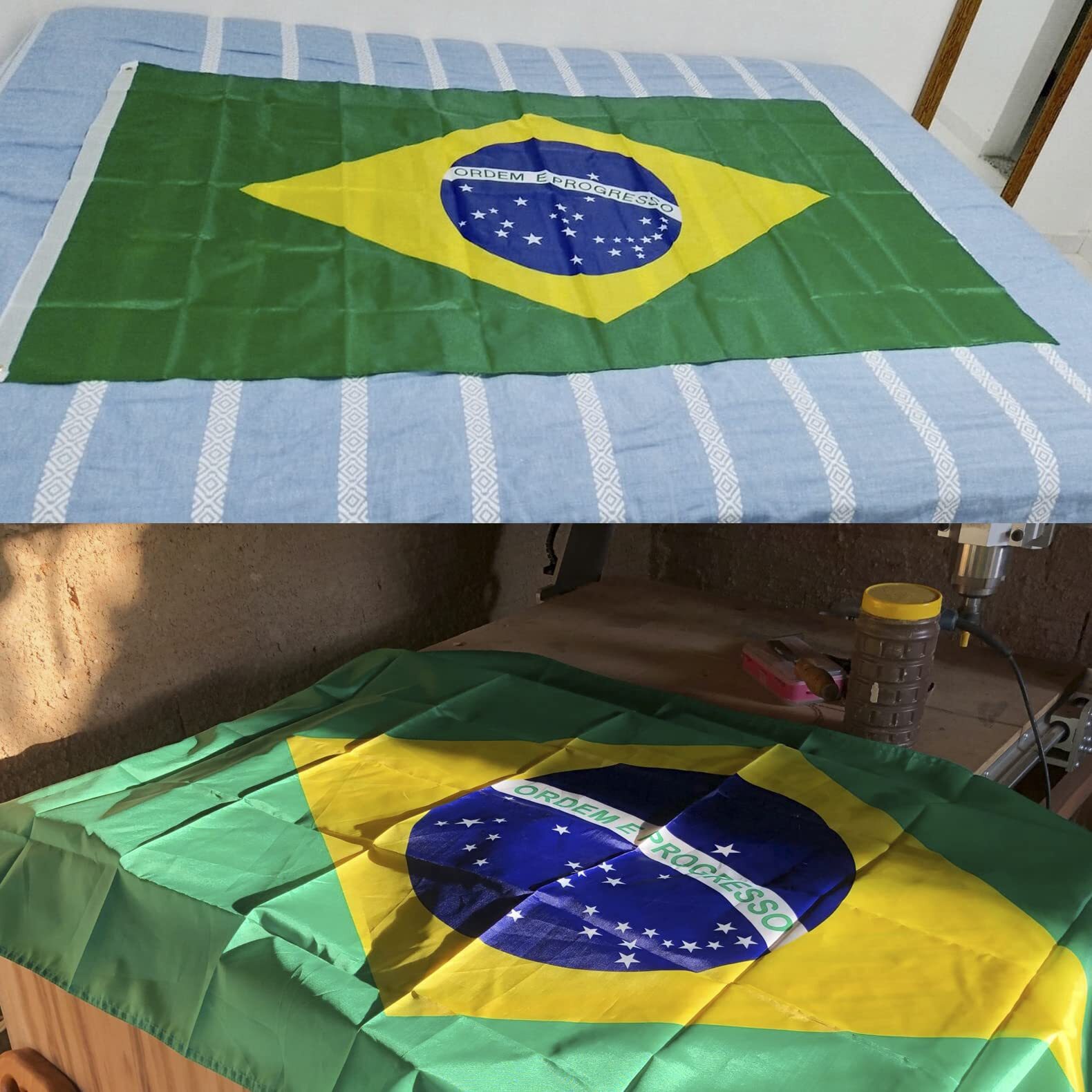 「綺麗に出来た裁縫」: ブラジル国旗の縫い目などが脱線したり旗にはみ出したりしないように、旗の縫製はしっかりしていて、角や端が綺麗に切断されております。