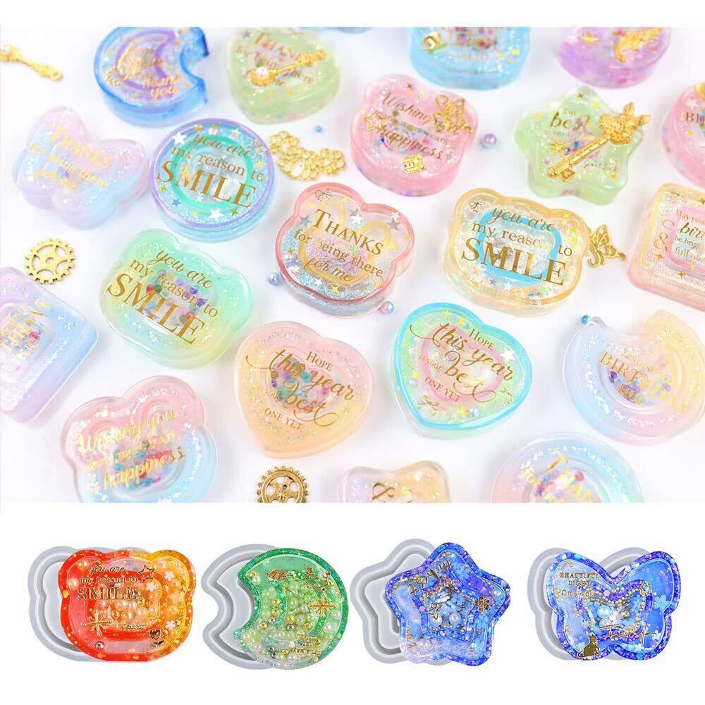 シリコンモールド 8個セット PPシート5枚付き 流砂型 レジン セット ソフトモールド uvレジン エポキシ樹脂 DIY手作り かわいい ペンダント アクセサリー 装飾 再利用可能 (A)