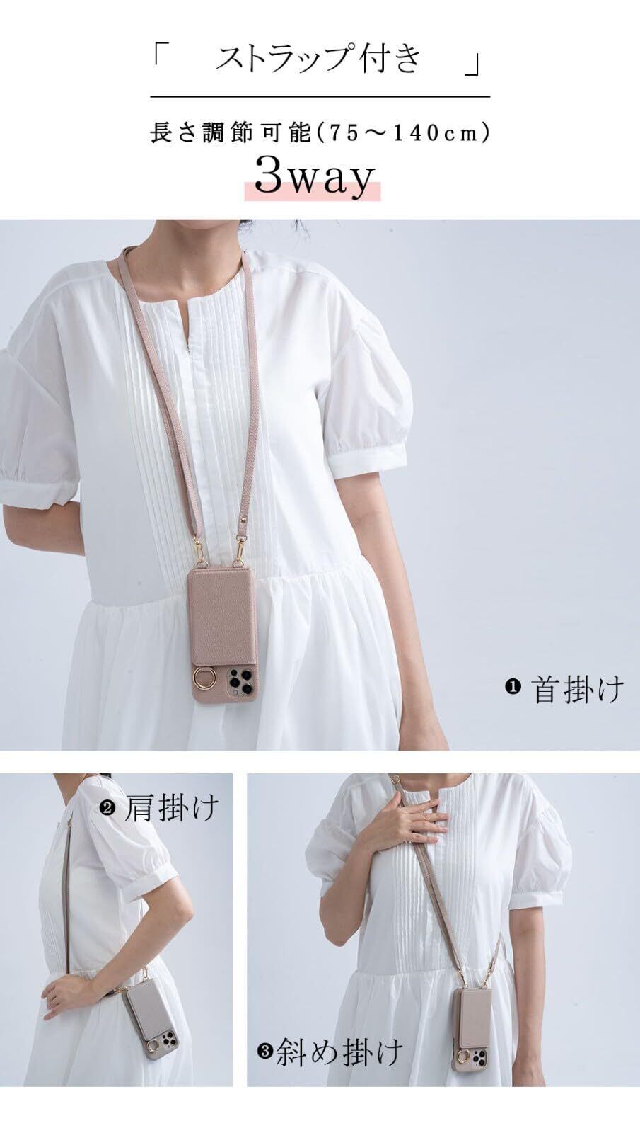 【3WAY:肩掛け、首かけ、斜めかけ】付属のストラップは長さ調節可能(75~140cm)。肩掛け、首かけで両手がフリーどこに行くのもアクアディブに。シーンに合わせて、ケース本体から取り外し可能!