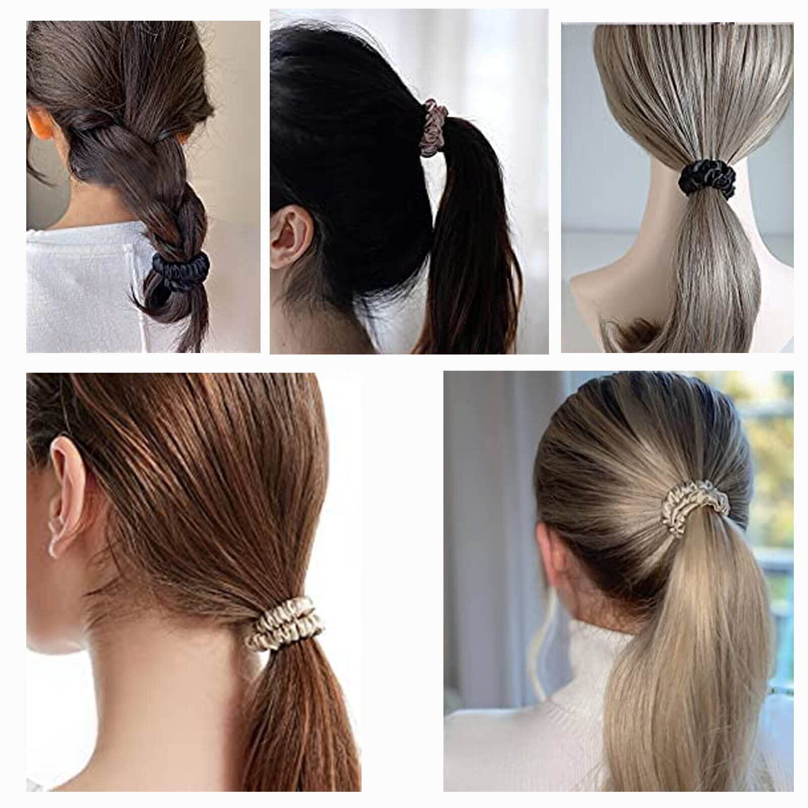【落ち着いた色】:シルクヘアゴムは4色の組み合わせ:アンズ、ネイビー、ピンク、ブラック。その日の気分や着こなしを色別に選ぶことができ、全体のコーディネートをより落ち着いて上品に見せることができます。