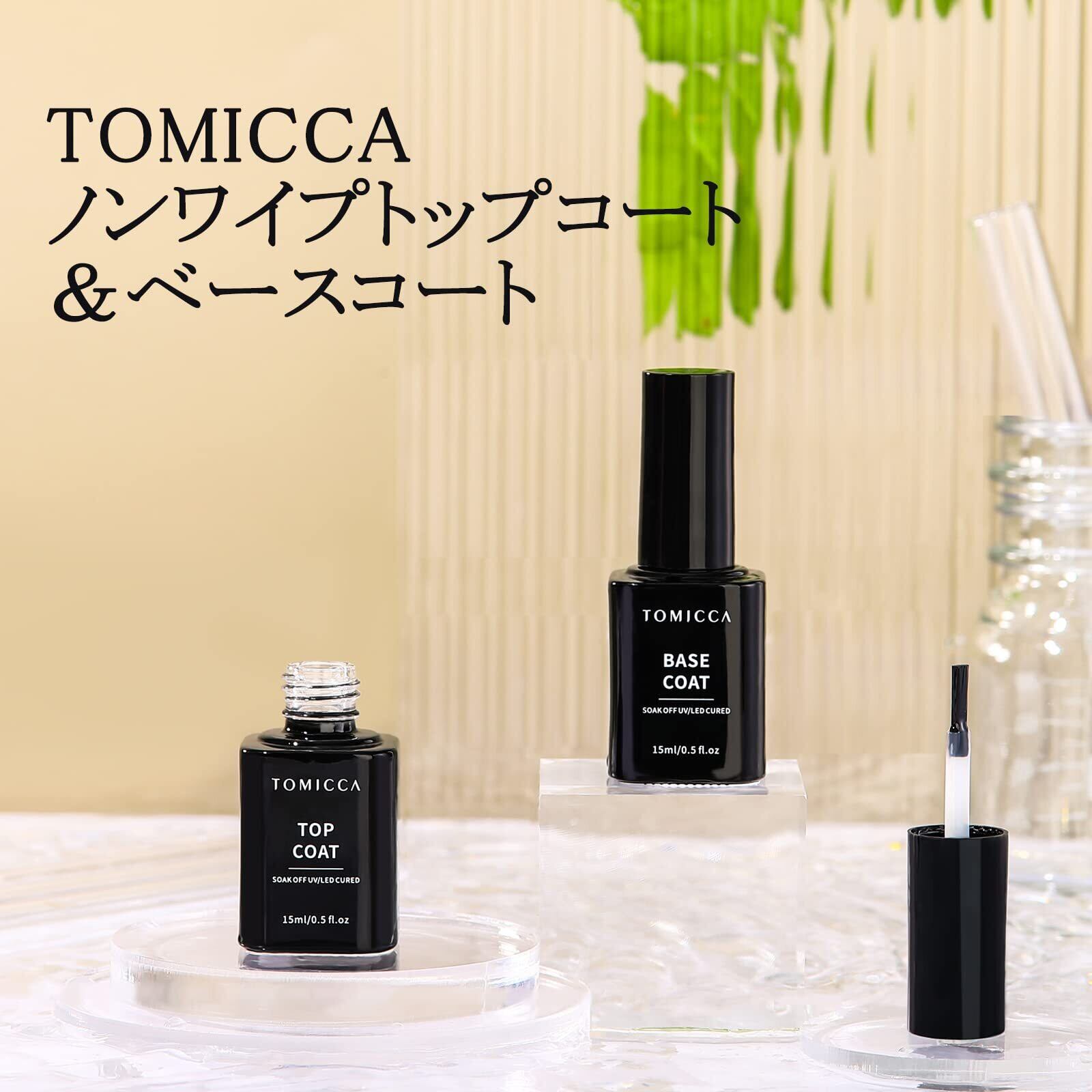 TOMICCA ジェルネイル トップコート ベースコート 15ml 2本セット ノンワイプ 拭き取り不要 大容量 UV/LED対応