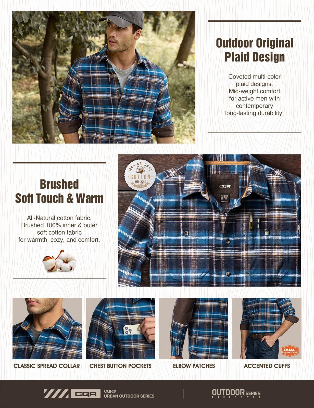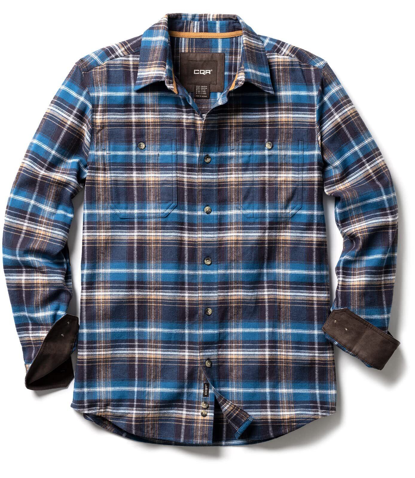 [CQR] 長袖 シャツ メンズ ネルシャツ [保温・厚手・耐久性] フランネル 無地 ネルシャツ ポケット付き 綿100 アウトドア 登山 キャンプ ゴルフウェア アメカジ 秋 冬