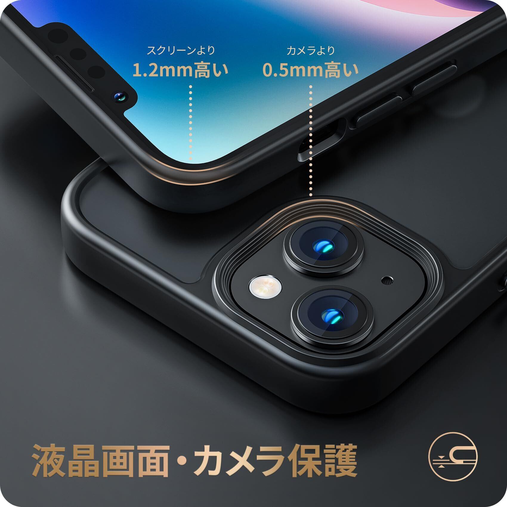【細部までも保護】液晶画面より1.2mm高め、併用のガラスフィルムまでも保護できます。背面側はカメラレンズより0.5mm高め、机などの平面に置いても傷付く心配はありません。更に、ケースの背面までも傷から保護でき、いつもキレイに保ちます。