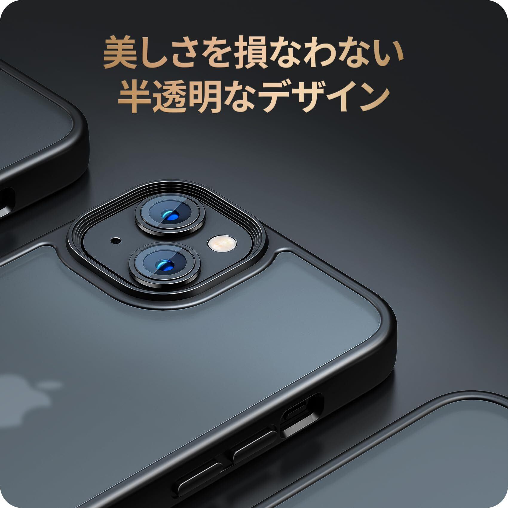 【半透明・マットな仕上げ】NIMASOのiphone 13 / 14 ケース背面のポリカーボネートは、耐久性や耐摩耗性に優れ、マットな質感でサラサラして触り心地がすごく良いです。表面には指紋防止ナノオコーティングを施しており、指紋つく心配はありません。特に、背面は半透明で、高級感と神秘感が溢れ、かっこいいリンゴロゴが見えます。