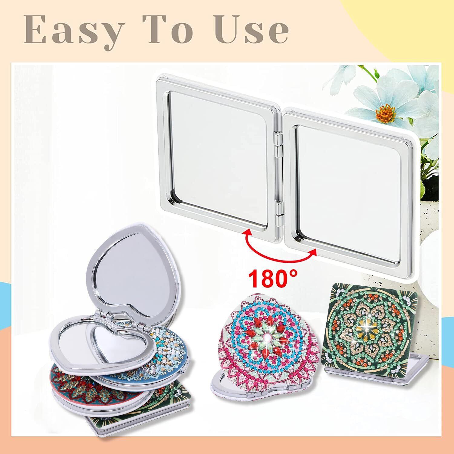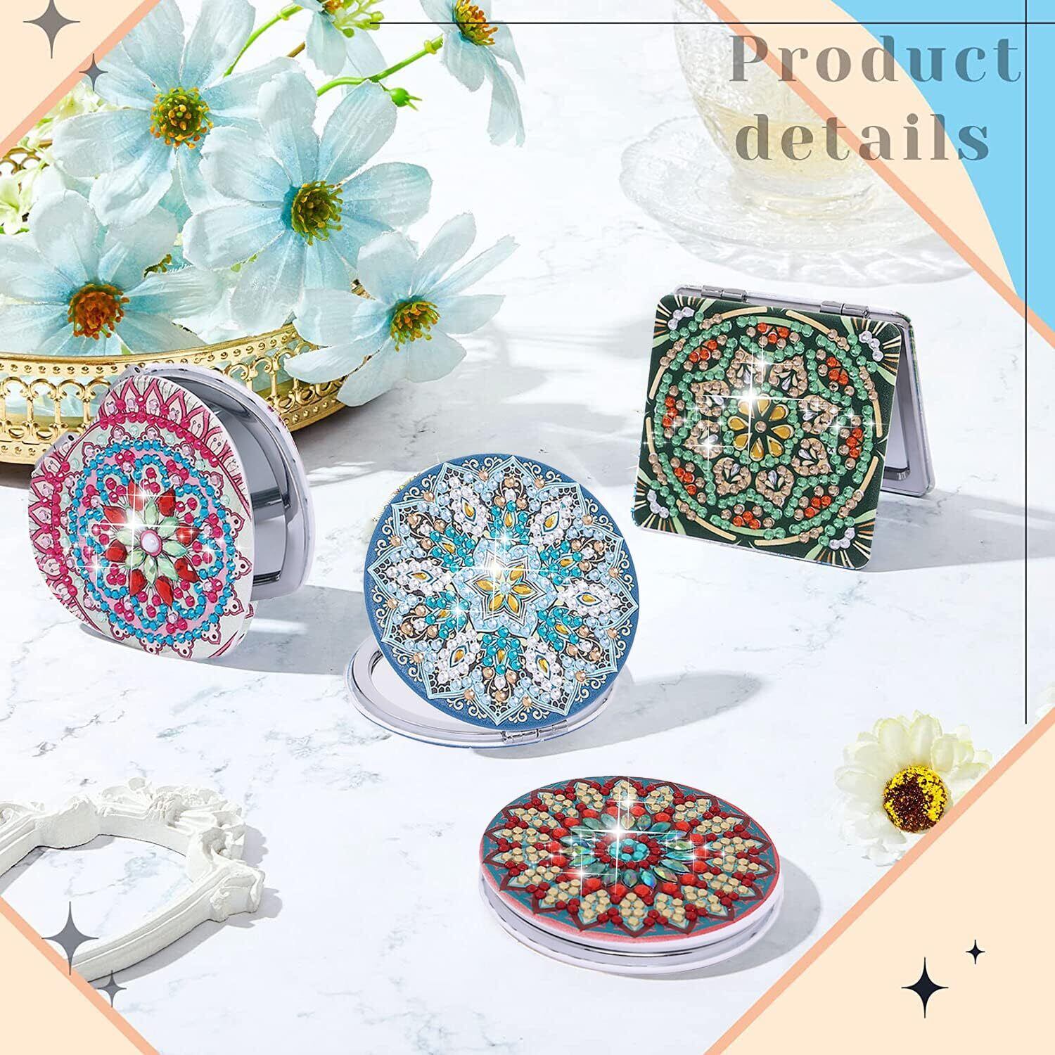 ダイヤモンドアート 手鏡 キット ダイアモンドアート セット 折りたたみ化粧鏡 ミラーDIYダイヤモンドペインティング 5Dダイヤモンド塗装キット 手芸キット四角いビーズアート 曼荼羅 初心者、大人、子供用 人気 手作りアートクラフト用品
