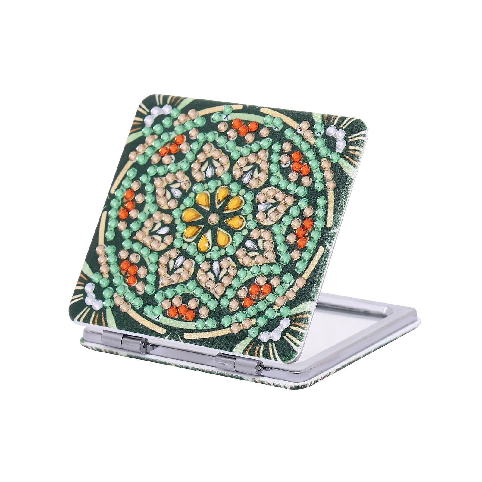 ダイヤモンドアート 手鏡 キット ダイアモンドアート セット 曼荼羅 折りたたみ化粧鏡 ミラーDIYダイヤモンドペインティング 5Dダイヤモンド塗装キット 手芸キット四角いビーズアート 初心者、大人、子供用 人気 手作りアートクラフト用品 (グリーン-かくがた鏡)