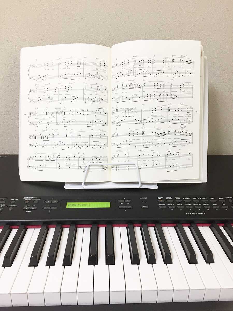 キーボードの譜面立てがない場合も、可愛い譜面台で楽譜をしっかり立てることができます。