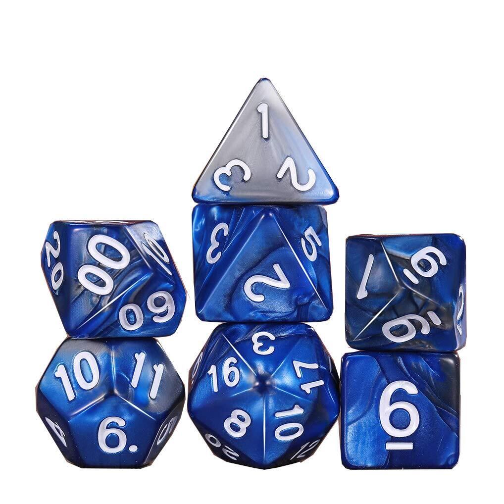 7個 多面体のダイス サイコロ 2色 16mm D20 D12 D10 D8 D6 D4 Dungeons and Dragons 、DND、 TRPG、 MTGなどテーブルゲーム用 (ブルー シルバー)