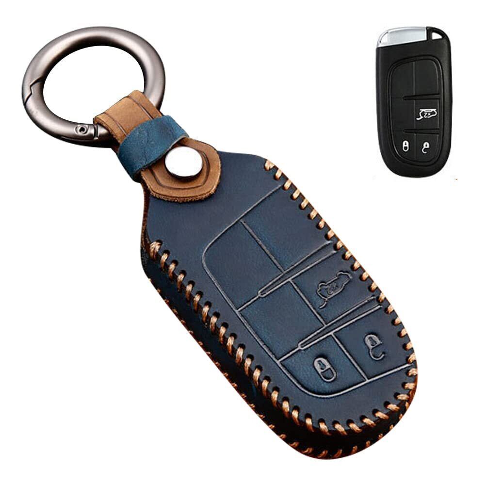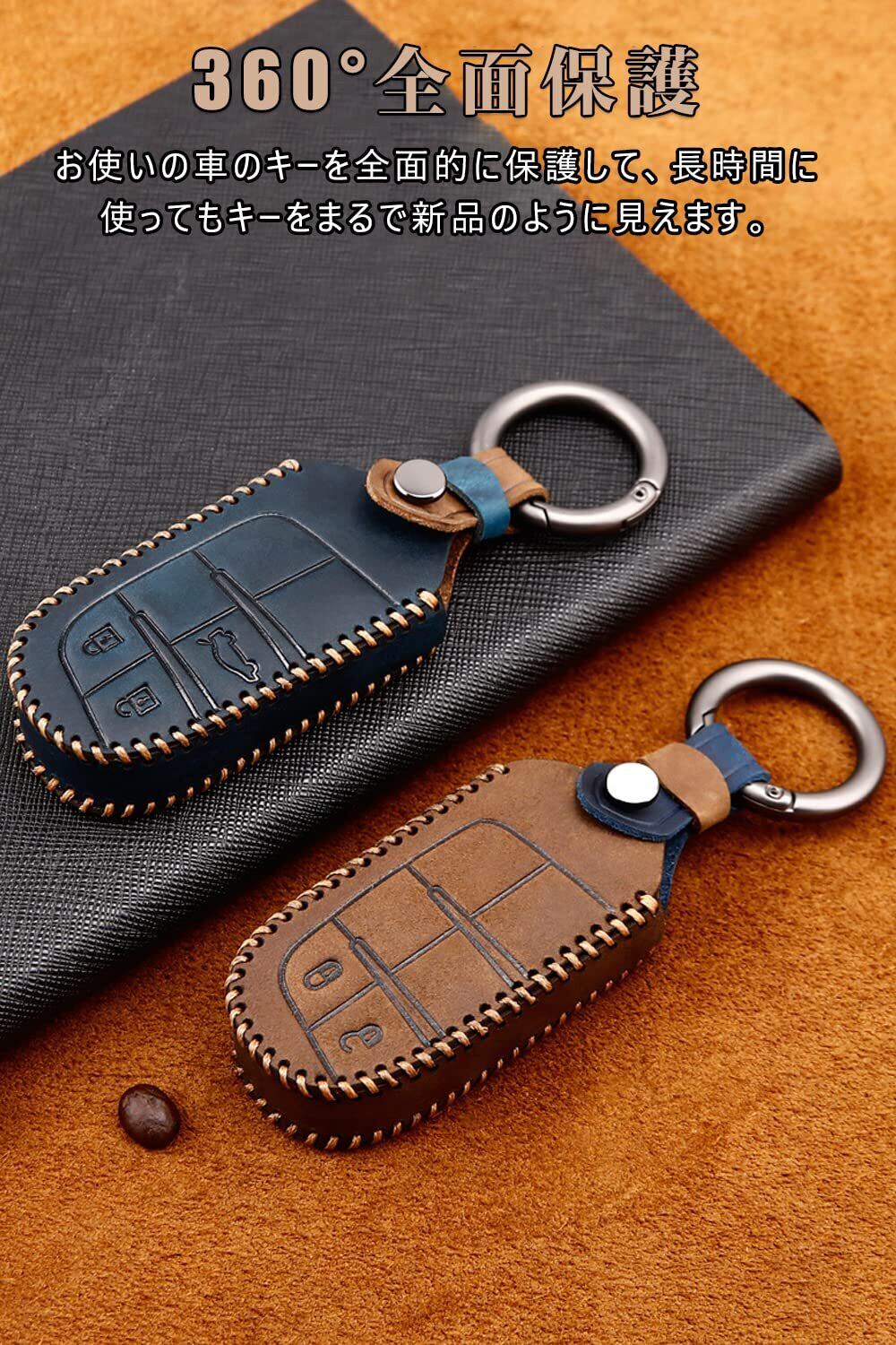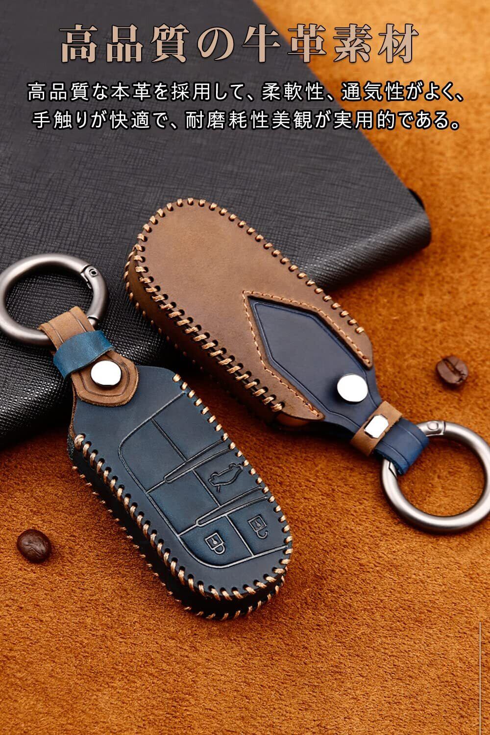[LETINGFAR] キーケース ジープ 用 スマートキーケース キーカバー 本革 レザー 手触りいい 3ボタン ジープ専用設計 キーホルダー Jeep チェロキー/グランドチェロキー/レネゲード/コンパス等に適用キーケース(ブルー)