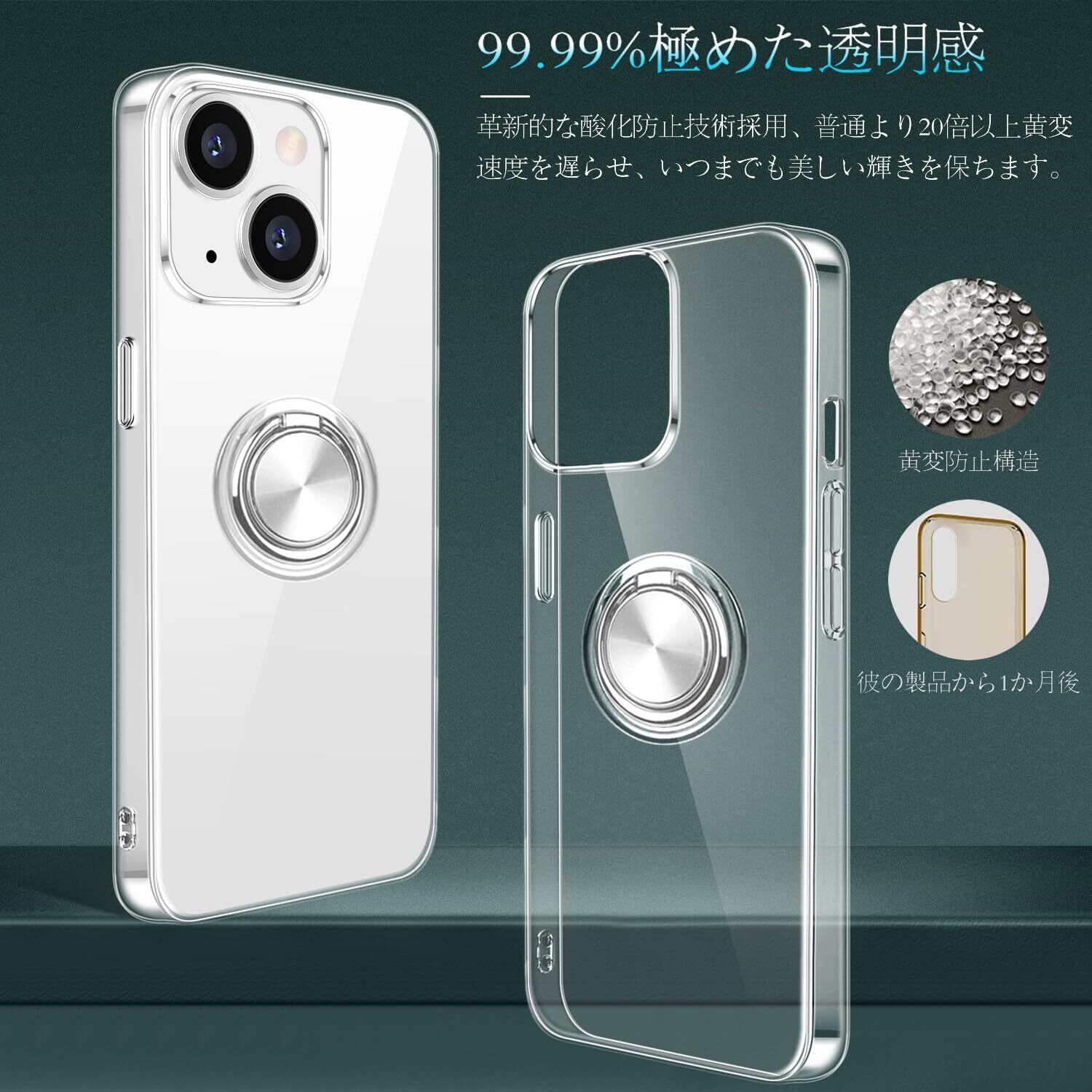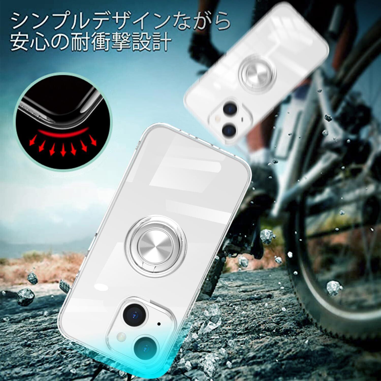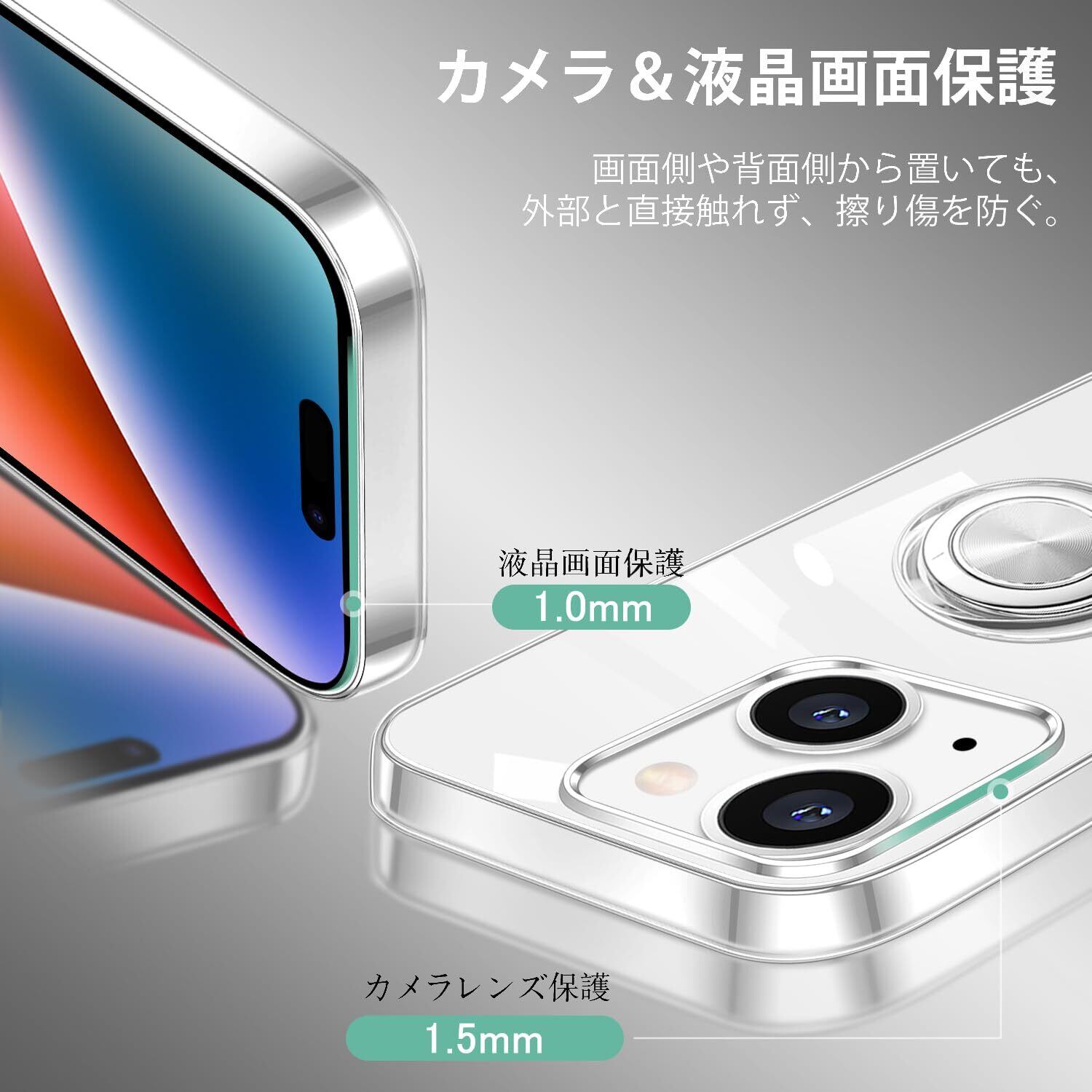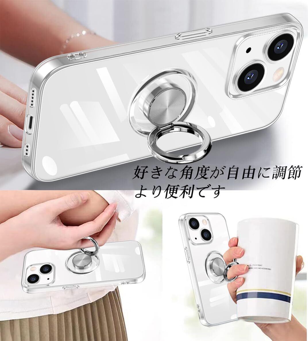 iPhone 15 用 ケース リング付き クリア カバー 耐衝撃 全面保護 軽量 薄型 イフォン スマホケース スタンド機能 車載ホルダー対応 擦り傷防止 滑り止め 落下防止 ストラップホール付き TPU 全透明