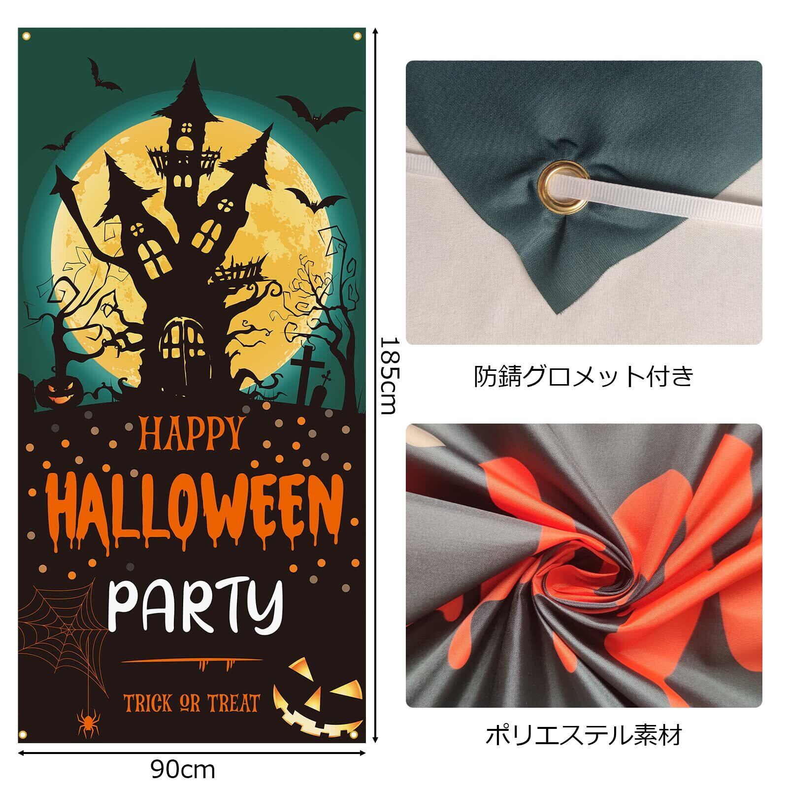 簡単に華やかに:ハロウィンパーティーをオシャレに彩るハロウィンタペストリーです。鮮やかなカラーで存在感ばっちりで、壁に飾るだけでお部屋があっという間にハロウィン仕様になり、おうちがフォトスタジオに早変わることができます。季節感の演出や店内の目立たせたい売り場を華やかに演出させるデコレーションです!