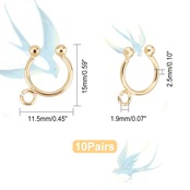 約10ペア 20個 15mm イヤーカフ フェイクピアス 耳の穴のない 真鍮 挟む カフイヤリング 穴付き 18Kゴールドメッキ レディースピアス イヤークリップ 軟骨クリップ ノンホールピアス シンプル 耳飾り イヤリング アクセサリーパーツ クラフト用品 手作り素材 DIY材料