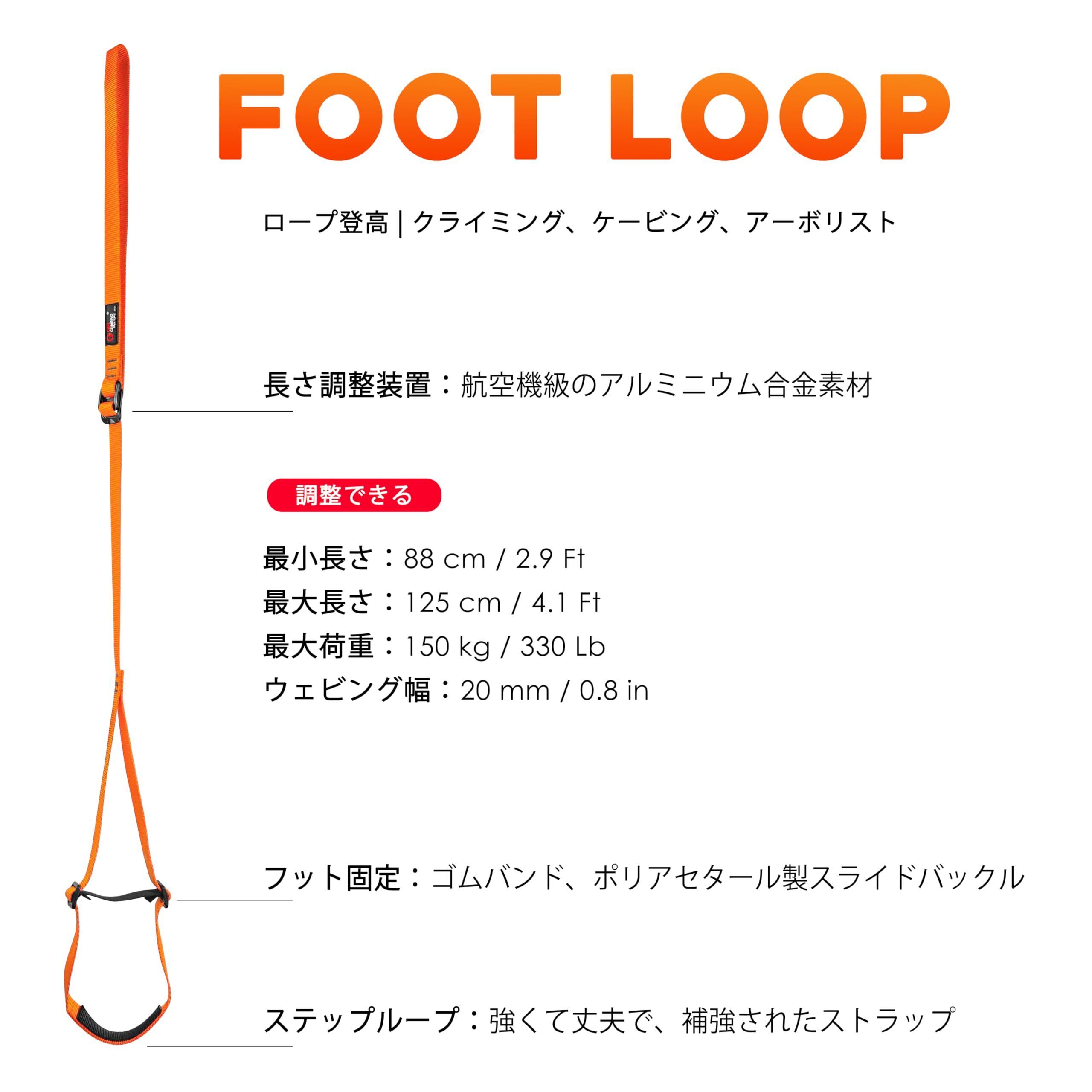 GM CLIMBING フットループ アッセンダー スリング 長さ調整可能 クライミング アーボリスト ロープ登高 レスキュー オレンジ