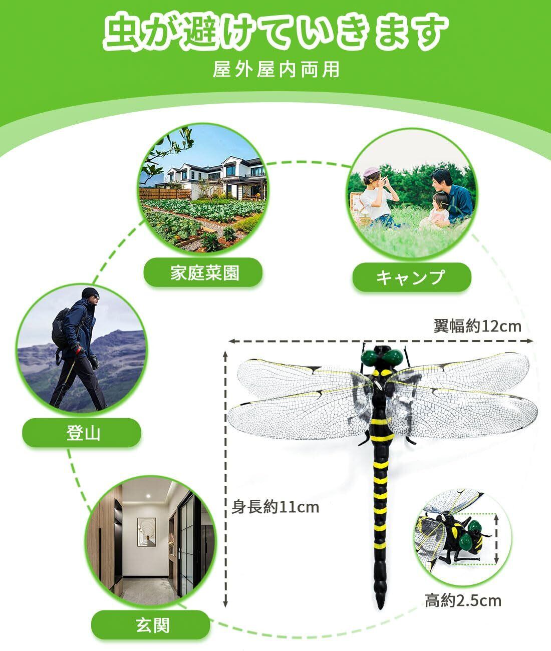 【アウトドア安心に】夏が来ると河川での釣り·林の中のキャンプ·ハイキング·バーベキューなど場所によく蚊たちは困せるでしょう。このトンボ虫よけ モデルは蚊などの昆虫を追い払うことができます,アウトドア安心に過ごしましょう。キャンプ、釣り、庭、窓、登山、通学バッグ、ランドセル、倉庫、家庭菜園、物置、農園、田んぼ、など虫除けとしてお使いください