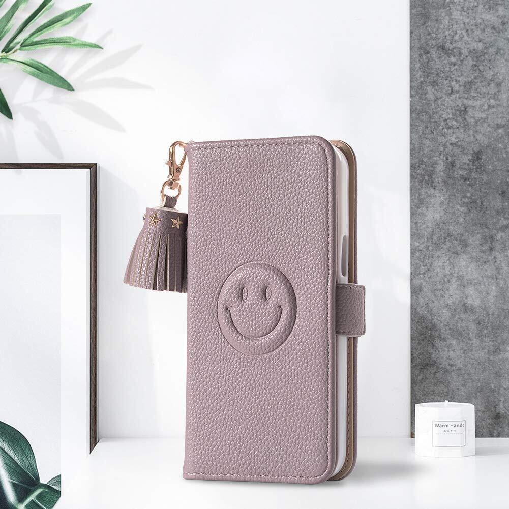 Xperia 5 iii SO-53B docomo SOG05 ケース 手帳型 おしゃれ 笑顔 SO-53B ケース 手帳型 かわいい 貴族の 女性 タッセル 携帯電話ケース 高級 レザー 全面保護 docomo SOG05 携帯カバー 財布型収納 超薄型 Sony Xperia 5 iii 水平ブラケット機能財布スマートフォンセッカバー(スモークパープル)