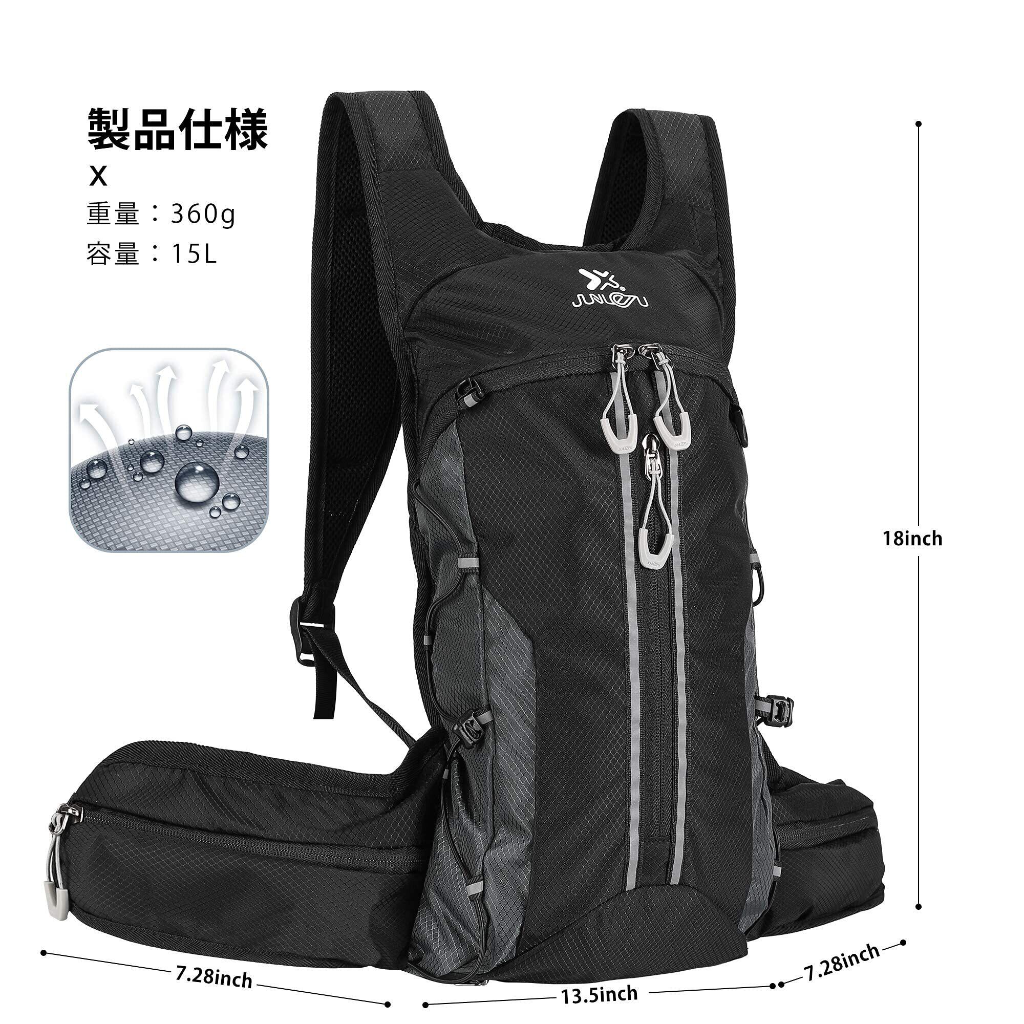 【超軽量&防水性】僅か360gで柔らかくて快適な自転車バッグパックは、圧迫することなく体をすっかりフィットします。摩擦に強い素材で作られており、防水性と耐久性にも優れています。サイズ:(H*D)60*46cm