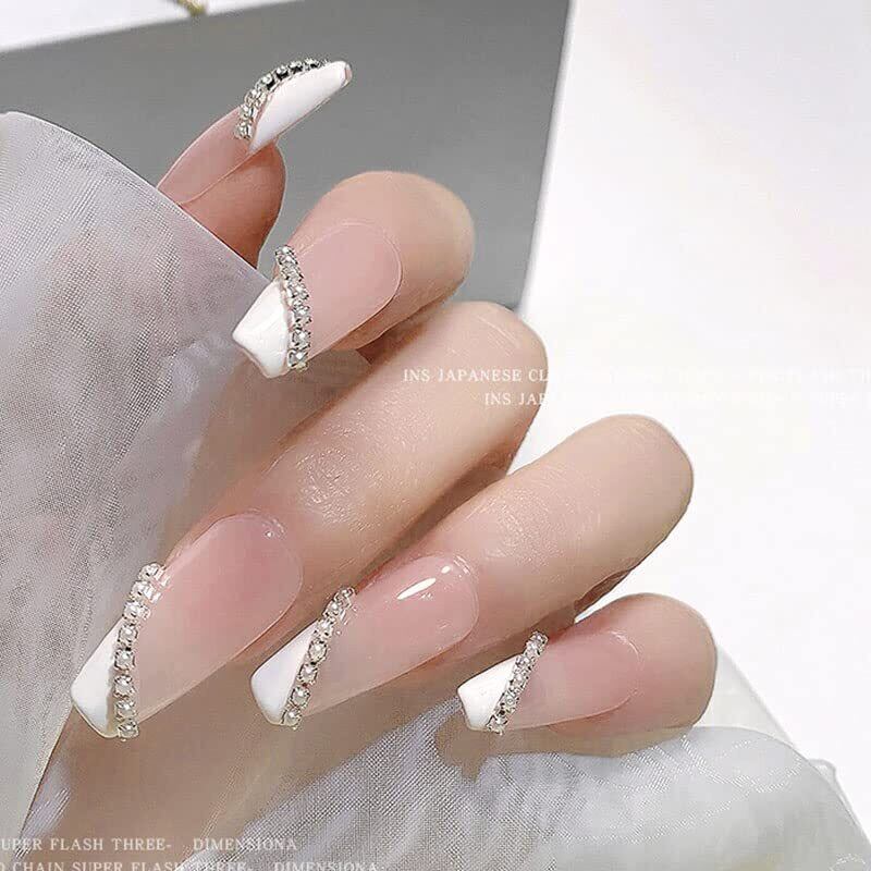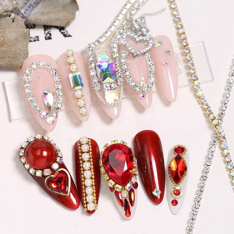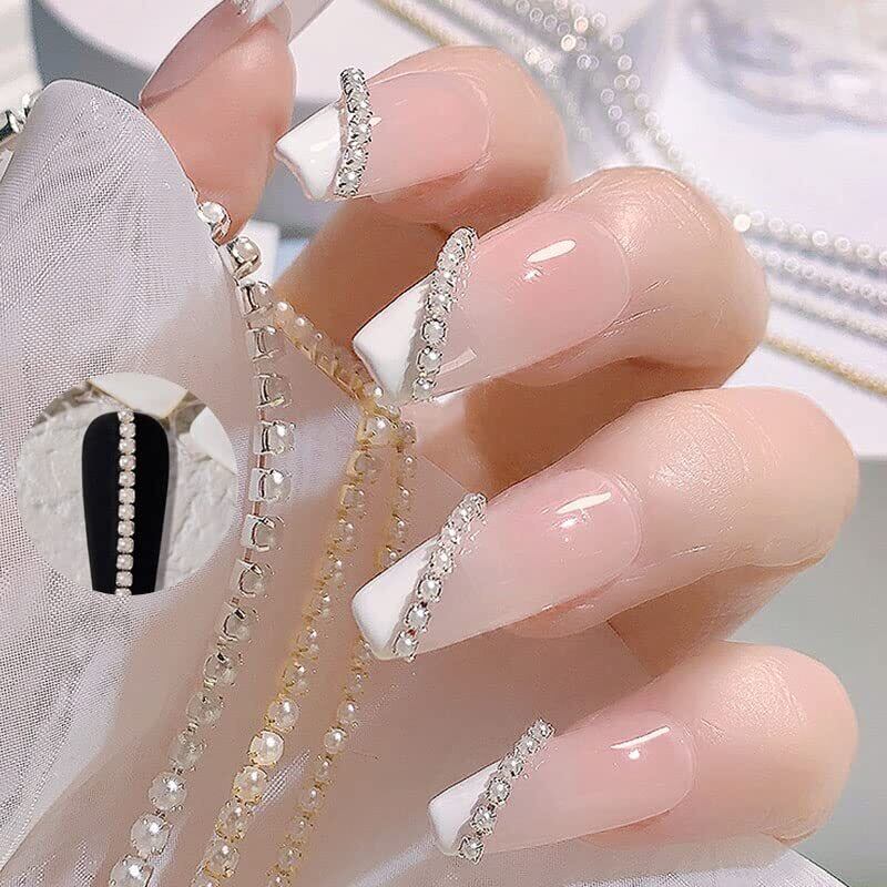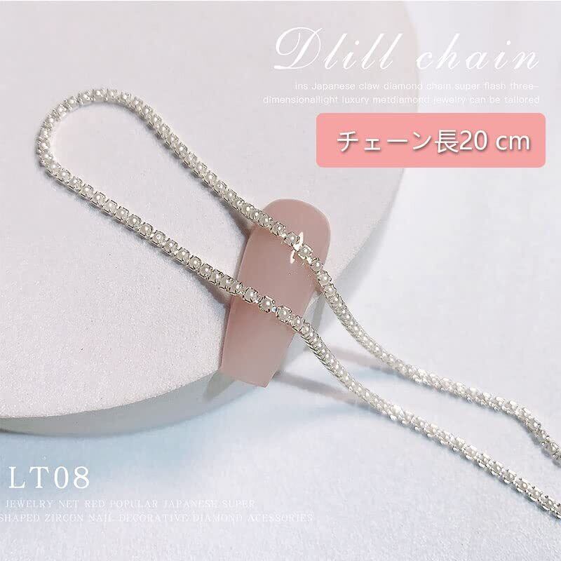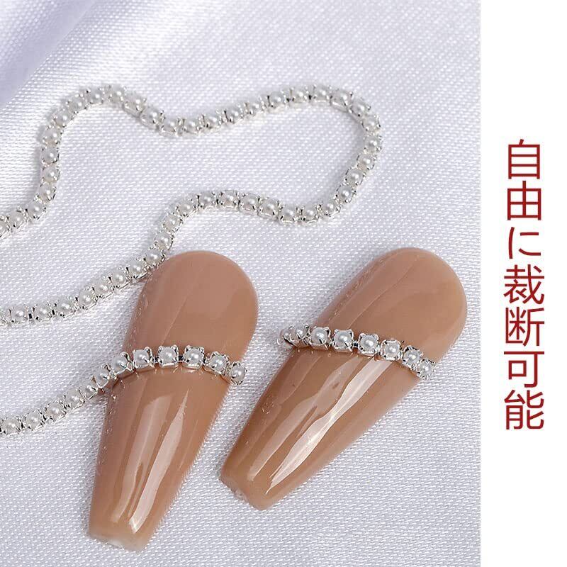 LIKENNY ネイルパーツ 25cm チェーン本 ラインストーンチェーン 裁断可能 細い シルバー アクセサリー 工芸品 ネイルアート DIY素材 ファッション オーナメント ネイルデザイン 2個 (パール)