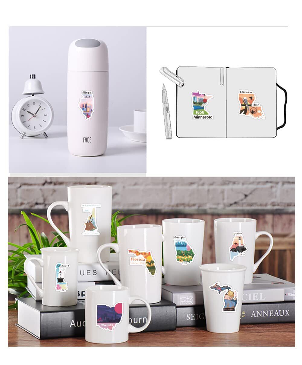 高品質材料:アメリカ50州ステッカーは高品質のPVC材料で作られており、安全で無毒、臭みがなく、日焼けても色褪せなく、しかも防水です。