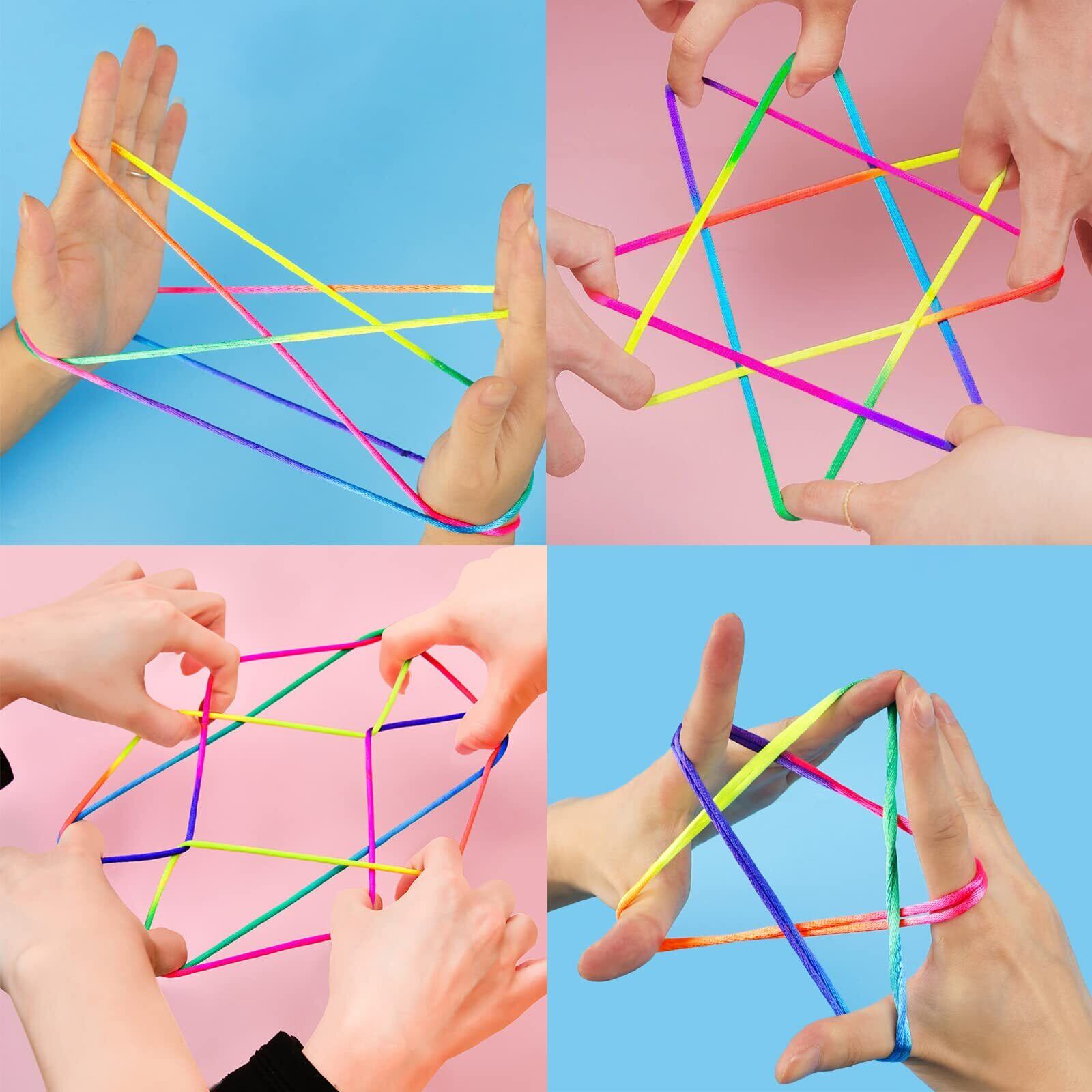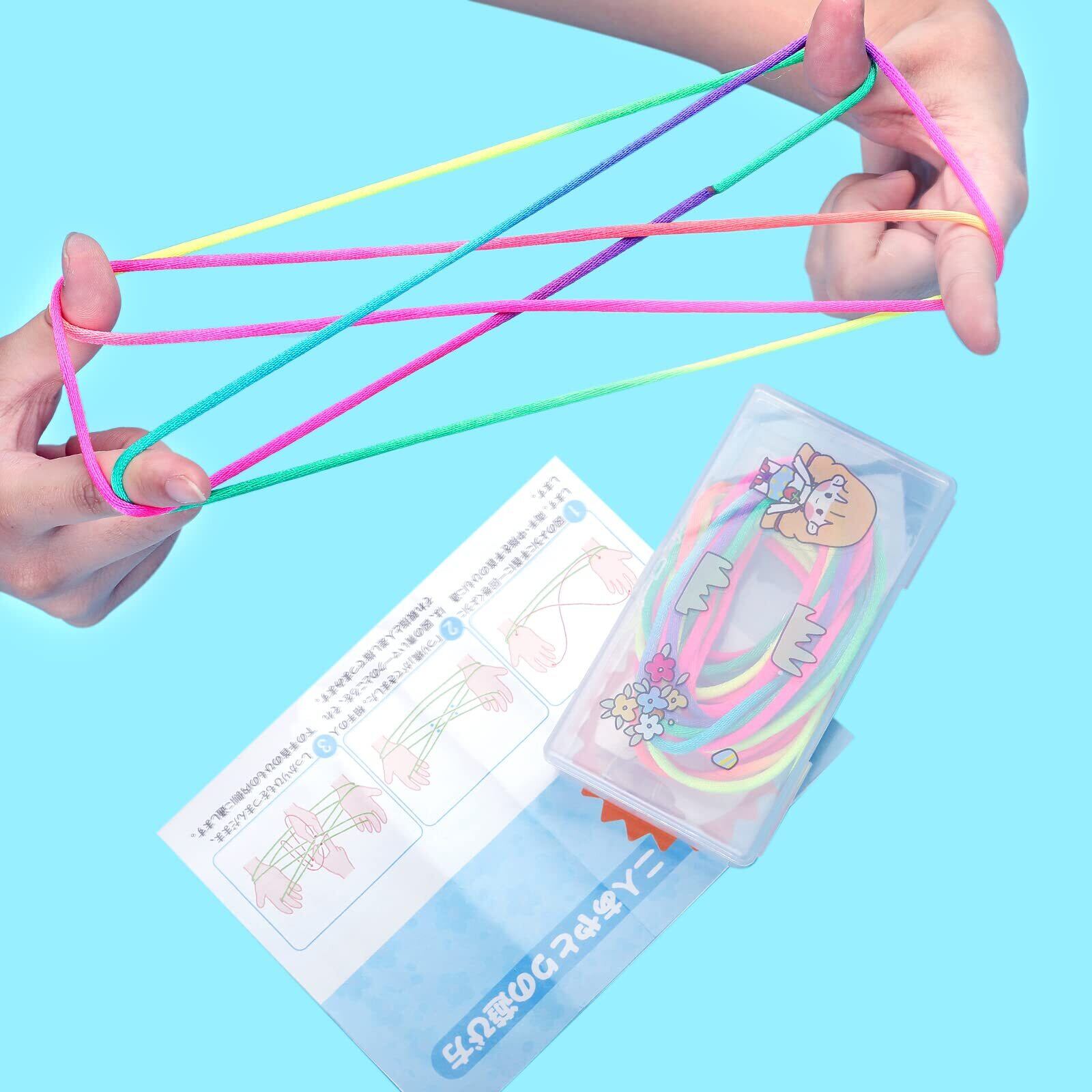 FINGOOO あやとりひも 図解説明書と収納ケース付き 結び目のない紐 子供あやとり糸 虹色 レインボー 遊び DIY 手作り 夏休み 6歳以上 大人に向け (3本)