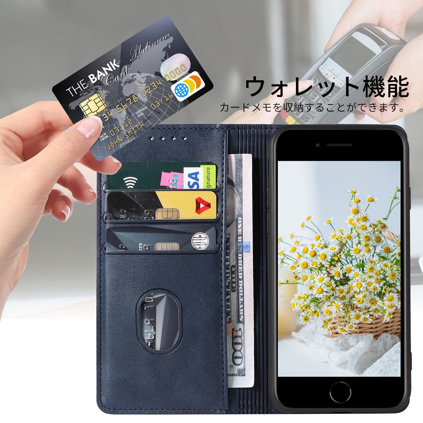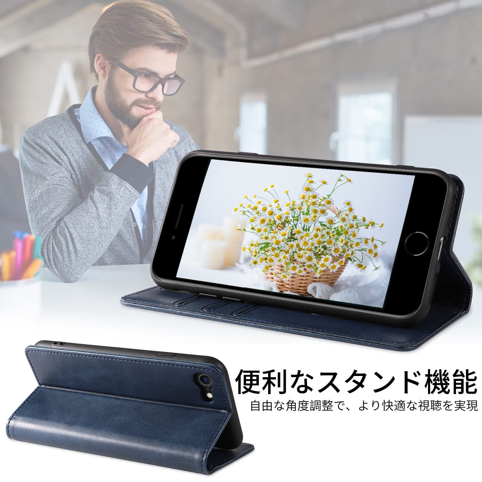 iPhone SE2 ケース 第2世代 第3世代 iphone8/7 ケース 手帳型 スマホケース 携帯カバー PUレザー カード収納ケース マグネット式 スタンド機能アイフォンse 4.7インチ対応 360度保護 PinLiSheng (ネイビー, iPhone SE2 iPhone SE3 iPhone8 iPhone7)