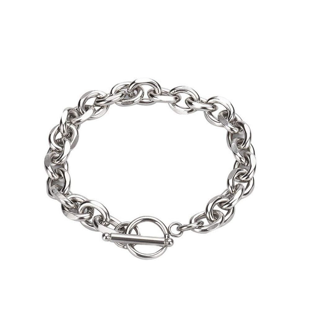 Rockyu ブレスレット チェーン メンズ シルバー OT マンテル チェーン ステンレス レディース 男女兼用 アクセサリー (21cm)
