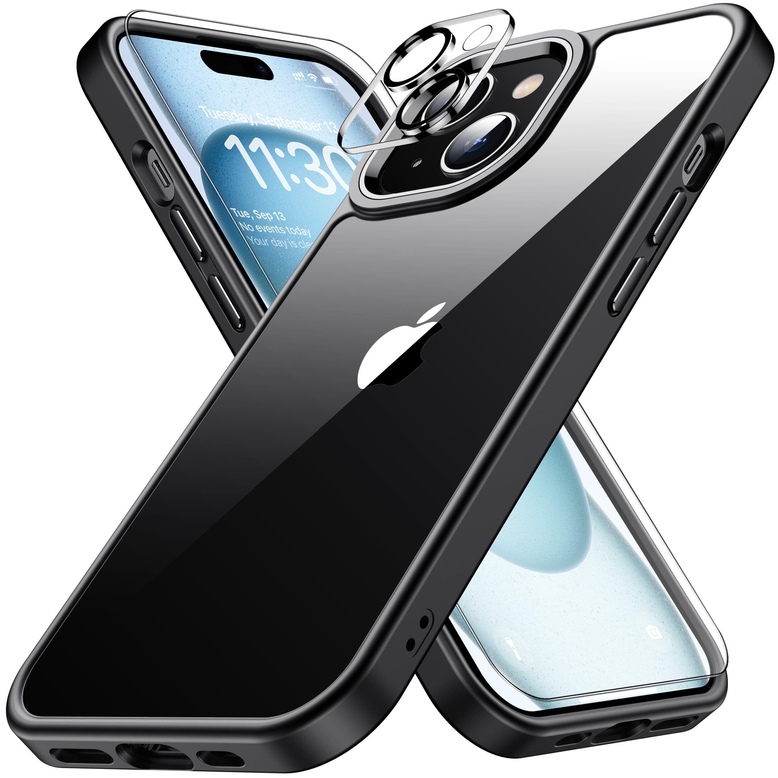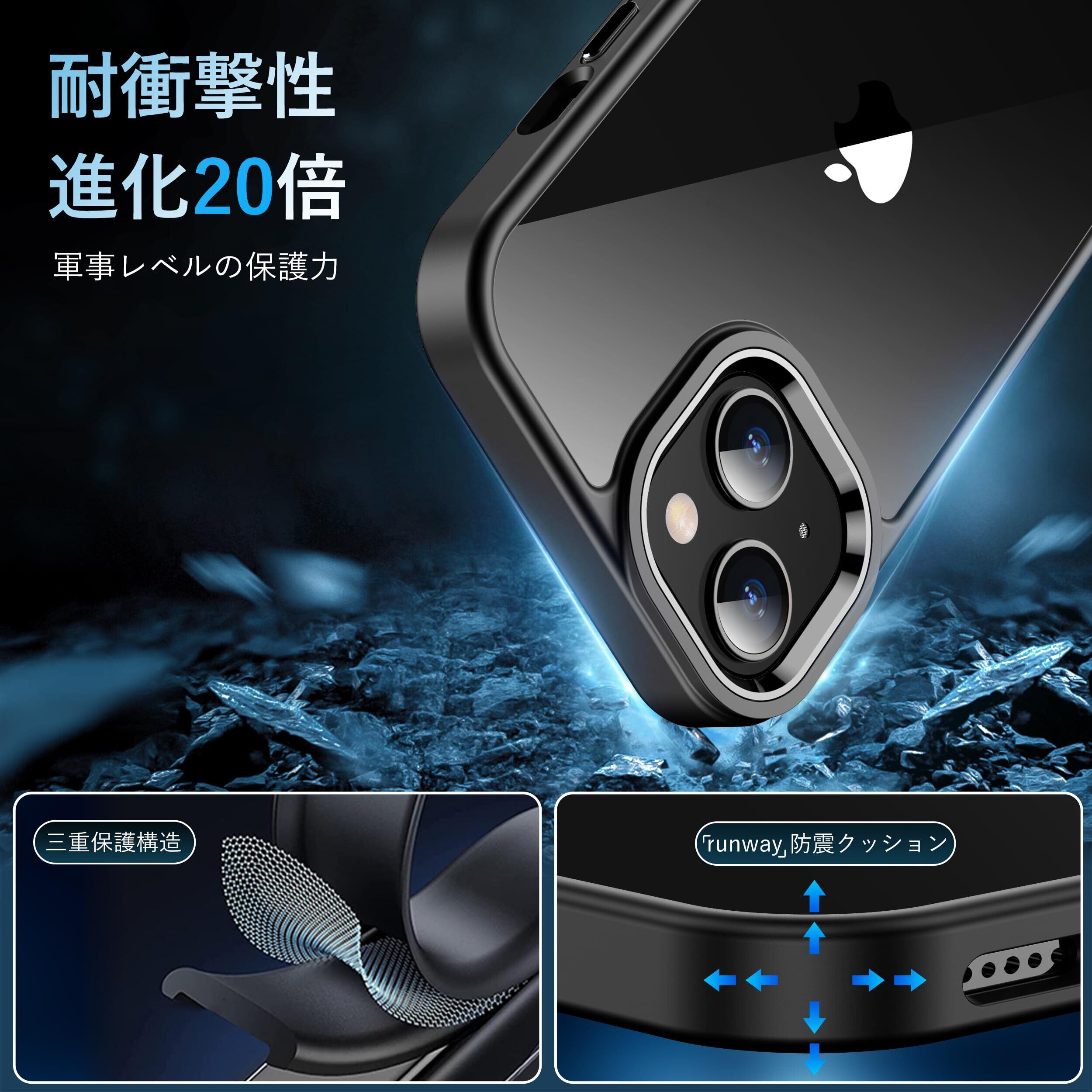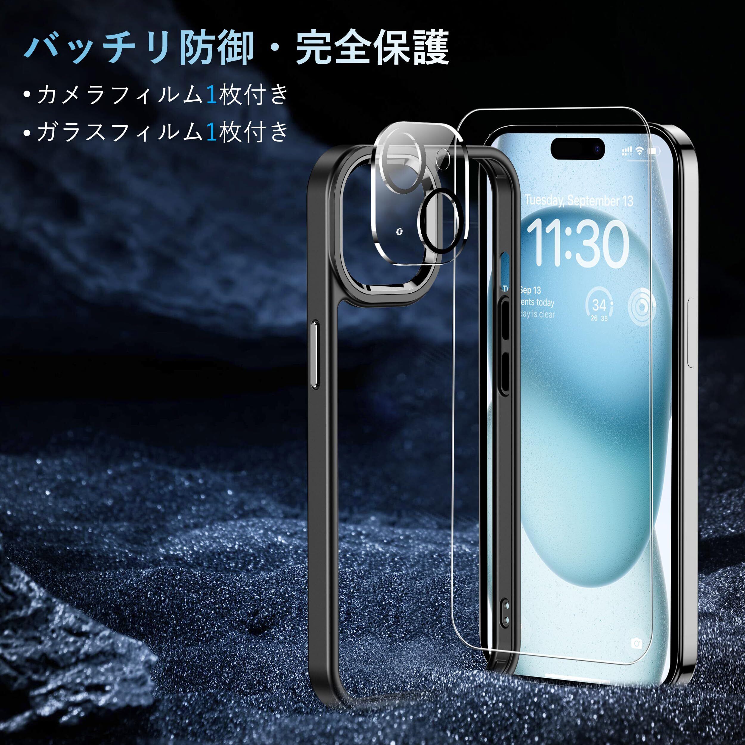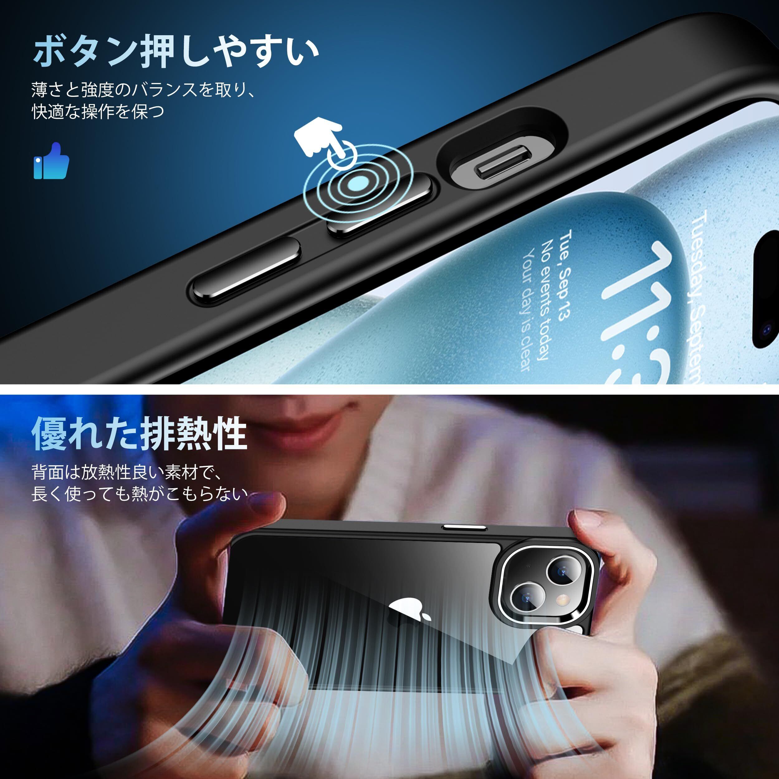 iphone15 用 ケース ブラック 耐衝撃 カメラレンズ保護付き アイフォン15 用 ケース 米軍MIL規格 耐久性 黄ばみ防止 アイホン15 用 ケース ワイヤレス充電対応 対応 SGS認証 スマホケース カバー 6.1インチ XIWXI