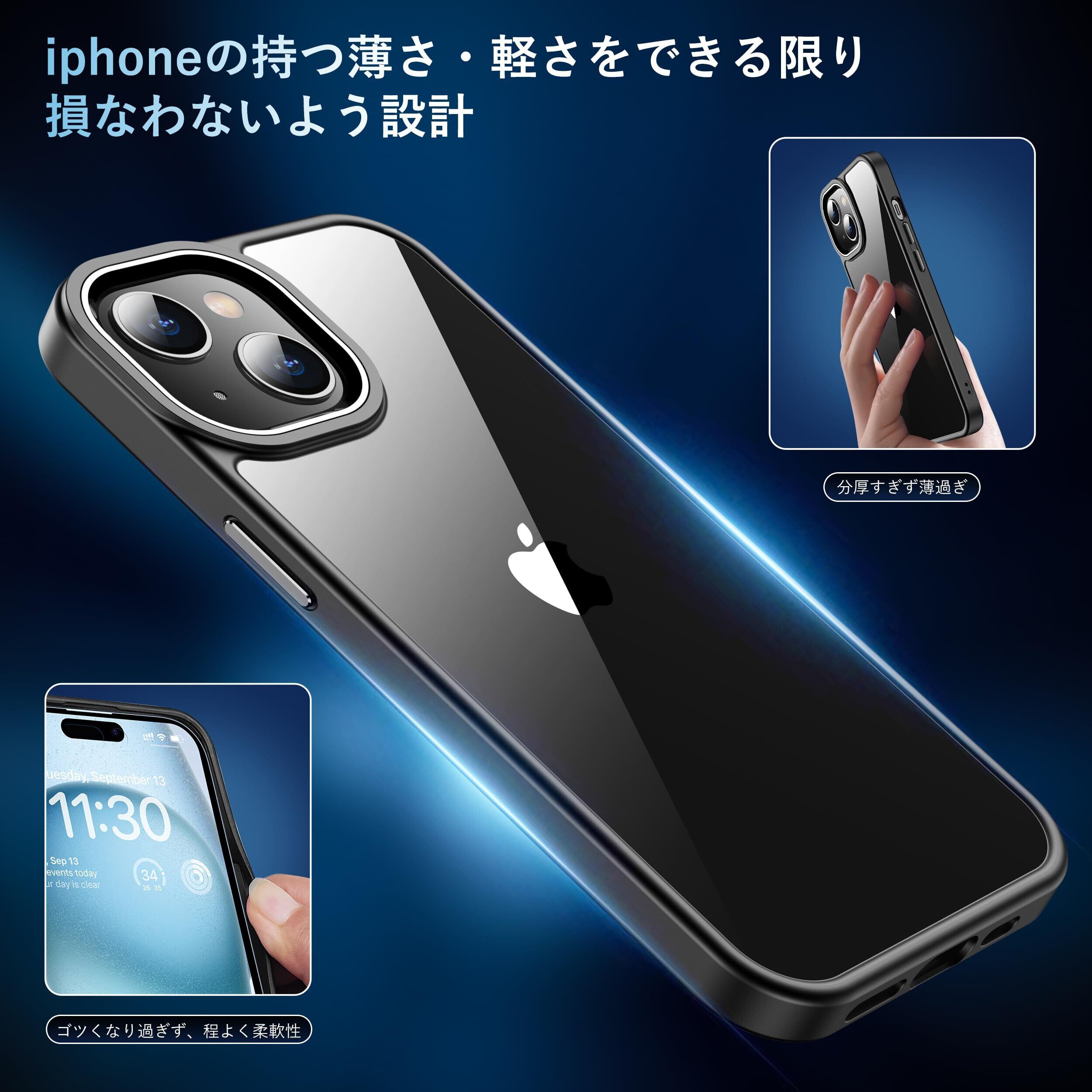 【高級感漂う・透明感抜群】 99.99%に持ち上げた透明感がiphone15の美しさをそのまま。厳選した高透明度、更に耐黄変に強い特殊なポリカーボネート素材を採用、指紋がつきにくい・黄ばんでなく正真正銘のクリア!本来の崇高な美しさと高級感を損なわなく、いつものスマホに上品さをプラス。