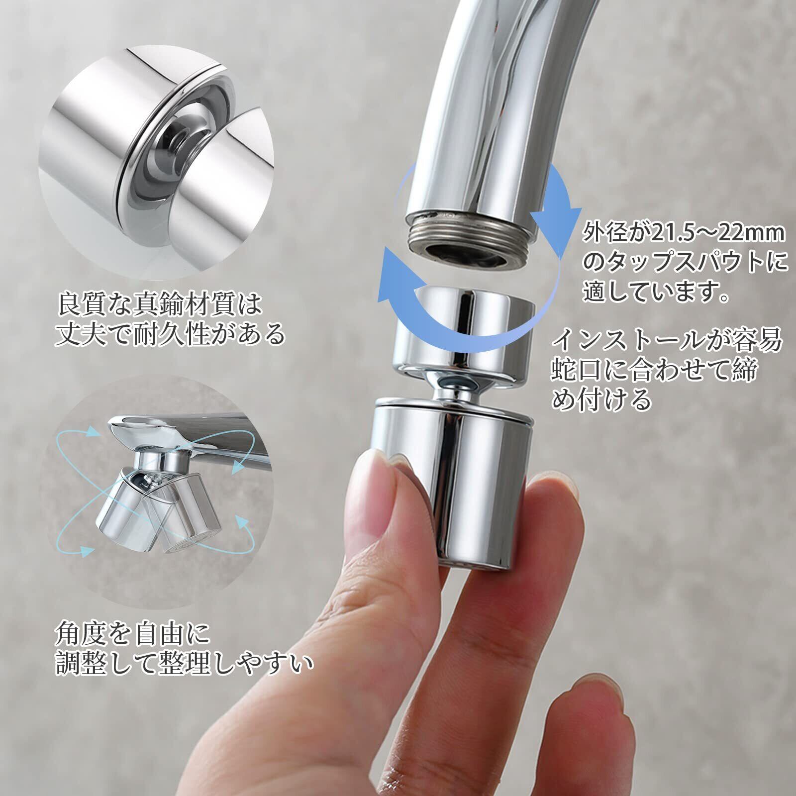 蛇口 シャワー 節水 首振りキッチン流しシャワー 蛇口変換器 ノズル キッチン蛇口シャワー 霧器 キッチン水栓蛇口 2段階切替噴霧器泡沫器蛇口 水流が滑らか 家庭 自宅用 泡沫器 洗面器 台所節水 360度回転 40度変更方向キッチン 取り付けやすい 耐久性のある銅頭 内ネジ 27*47mm シルバー