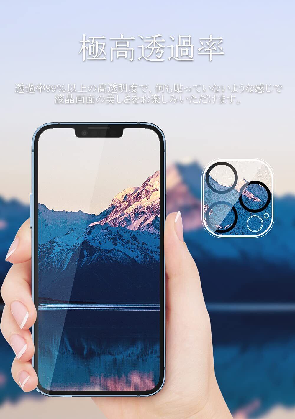 【対応機種】iPhone 13 pro max 専用 ガラスフィルム。画面ガラスフィルム 2枚 + カメラ保護フィルム 2枚。注意:本製品はiphone 13 promaxにのみ適用されます。
