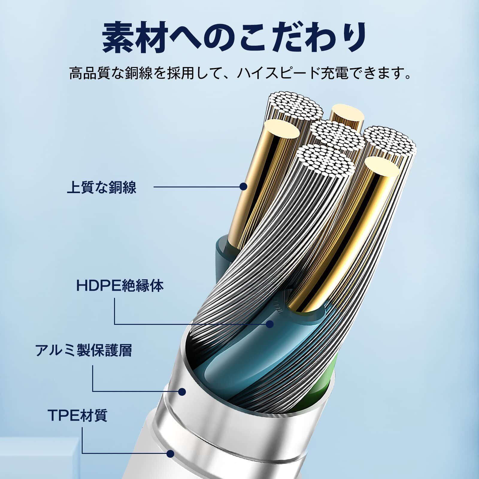【安全重視のこだわり設計】:高品質な銅線を採用してケーブル内部の電気抵抗が低く、充電時間を短縮してくれます。3Aの高出力を流せしかも過充電と発熱などを防ぎ、安定性の高い急速充電と大切な機器の損傷防止を実現します。