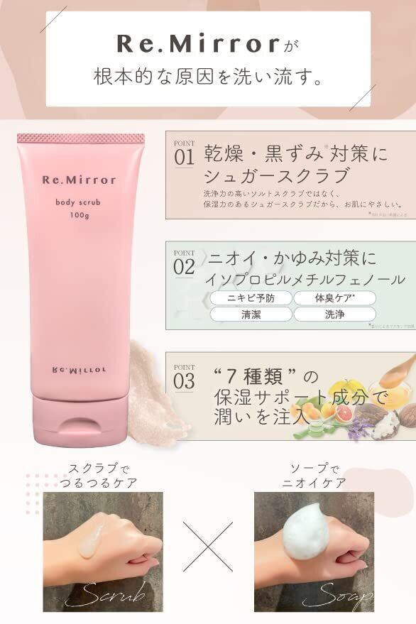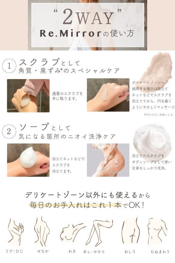 [2way 泡立つ] Re.Mirror レミラー デリケートゾーン ボディスクラブ シュガー フリージアの香り 100g 日本製 vio 全身 お尻 敏感肌 デリケートソープ 保湿 角質 人気
