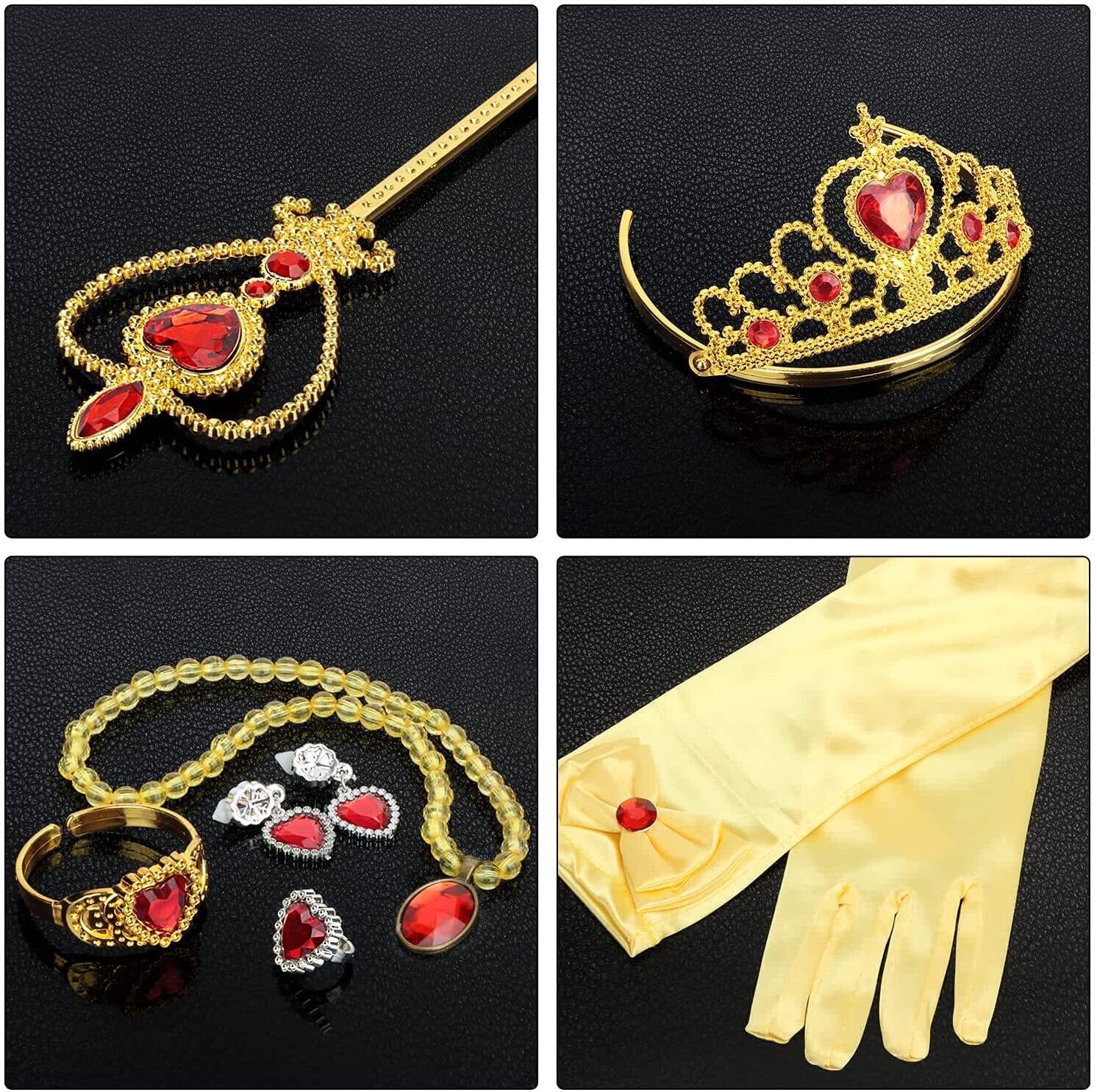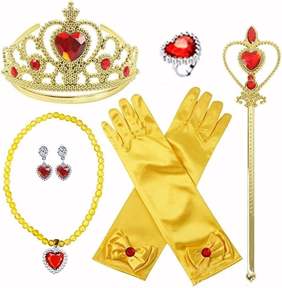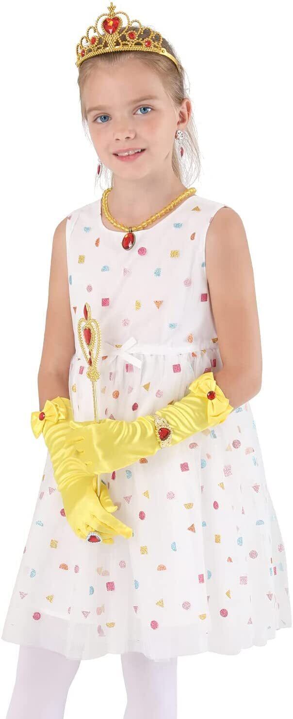 [Be-Unique] プリンセス アクセサリー おもちゃ セット ティアラ ブレスレット ネックレス スティック イヤリング リング 手袋 変身 なりきり 子供 コスチューム用小物 パーティーに最適 6点セット (ゴールド)