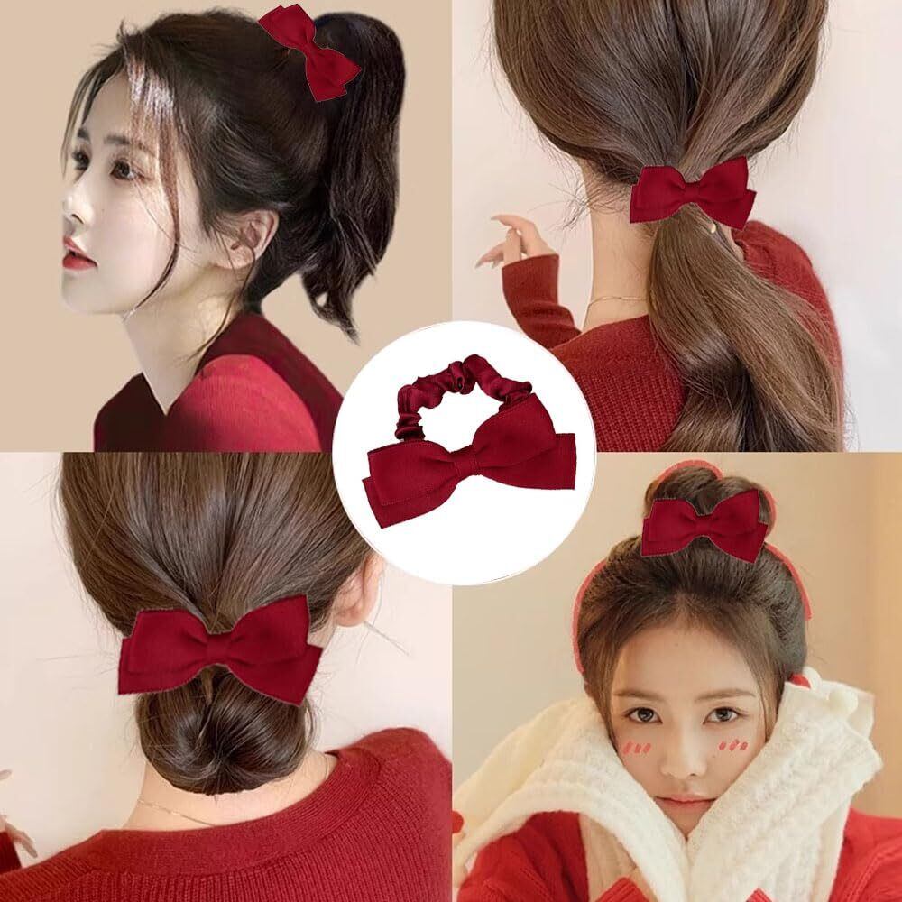 YINKE ヘアゴム ヘアアクセサリー リボン 大人 髪留め レディース ヘアバンド 輪ゴム 髪飾り 七夕 パーティー 卒業式 結婚式プレスレット かわいい おしゃれ オーガンザ リボン (蝶 1個入り(赤))