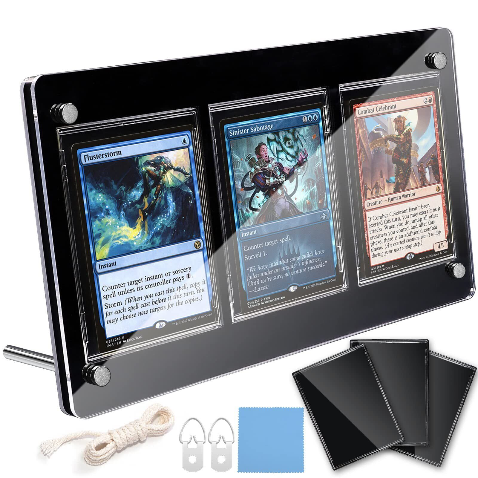 UVプロテクト:3連スクリューダウン カードスタンドこれらのフレームはアクリル板で作られた。全てのフレームは紫外線抵抗のです。あなたの大切のカードを保護でき、火傷を受けません。蛍光灯の下でカードが色落ちません。