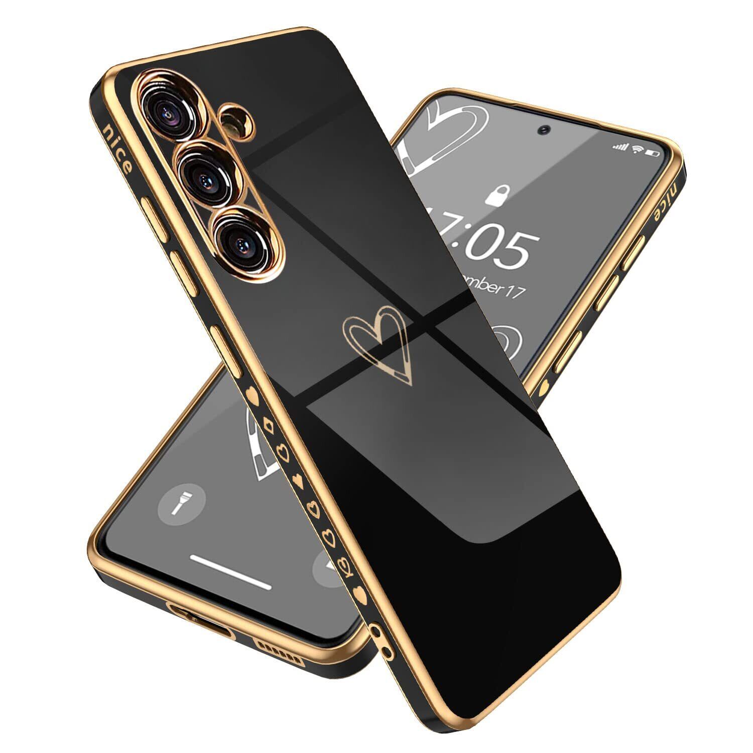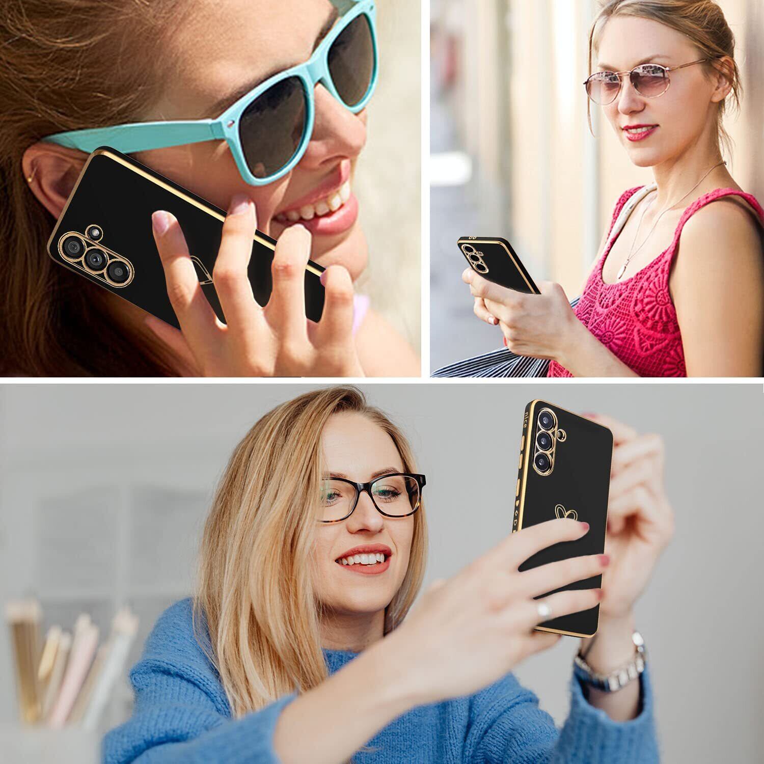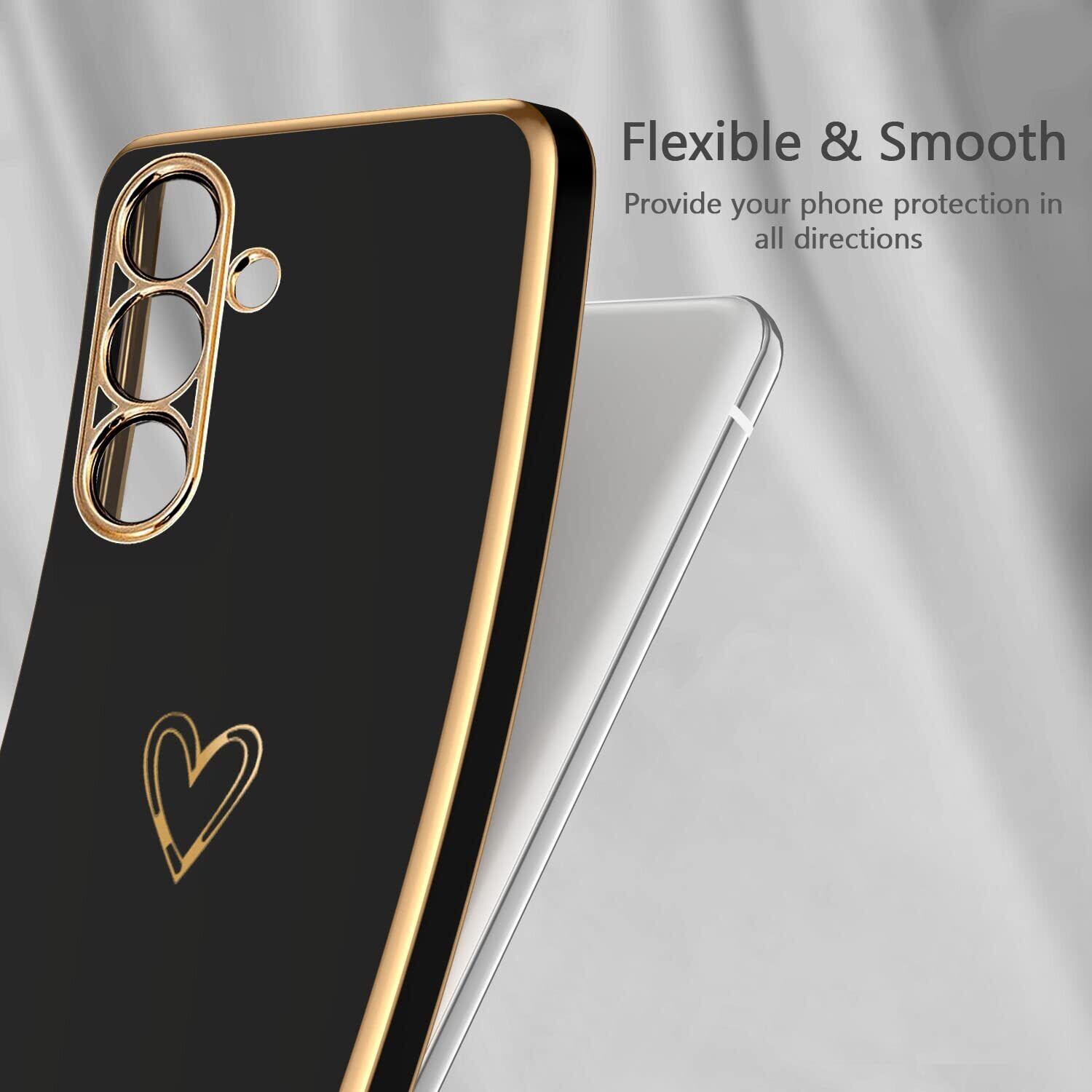 Samsung Galaxy A54 5G ケース SC-53D/SCG21 ケース かわいい メッキラブハートソフト TPU カバー 女性 人気 軽量 スマホケース レンズ保護 落下防止 カバー ワイヤレス充電対応 携帯電話ケースギャラクシーA54用カバー - ブラック