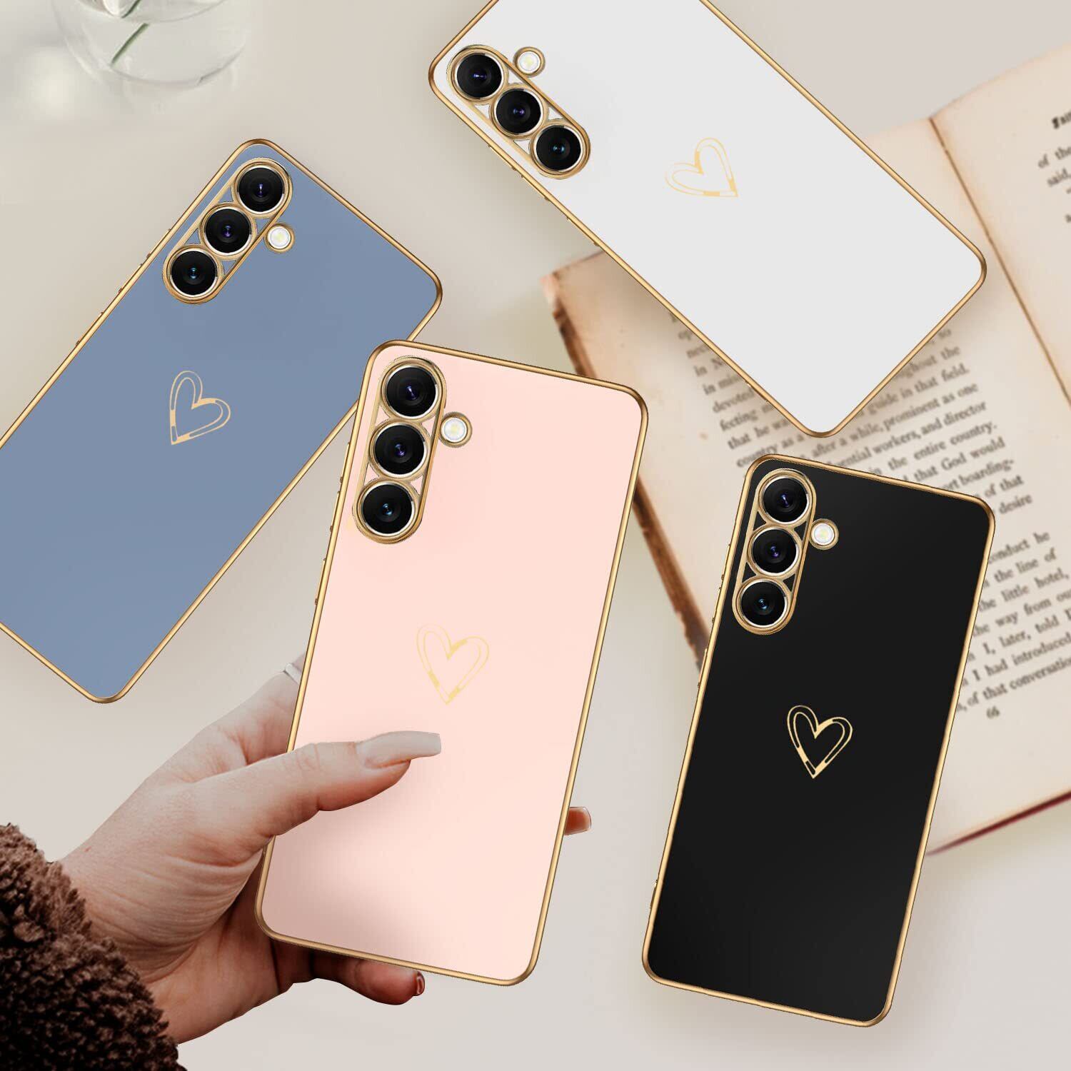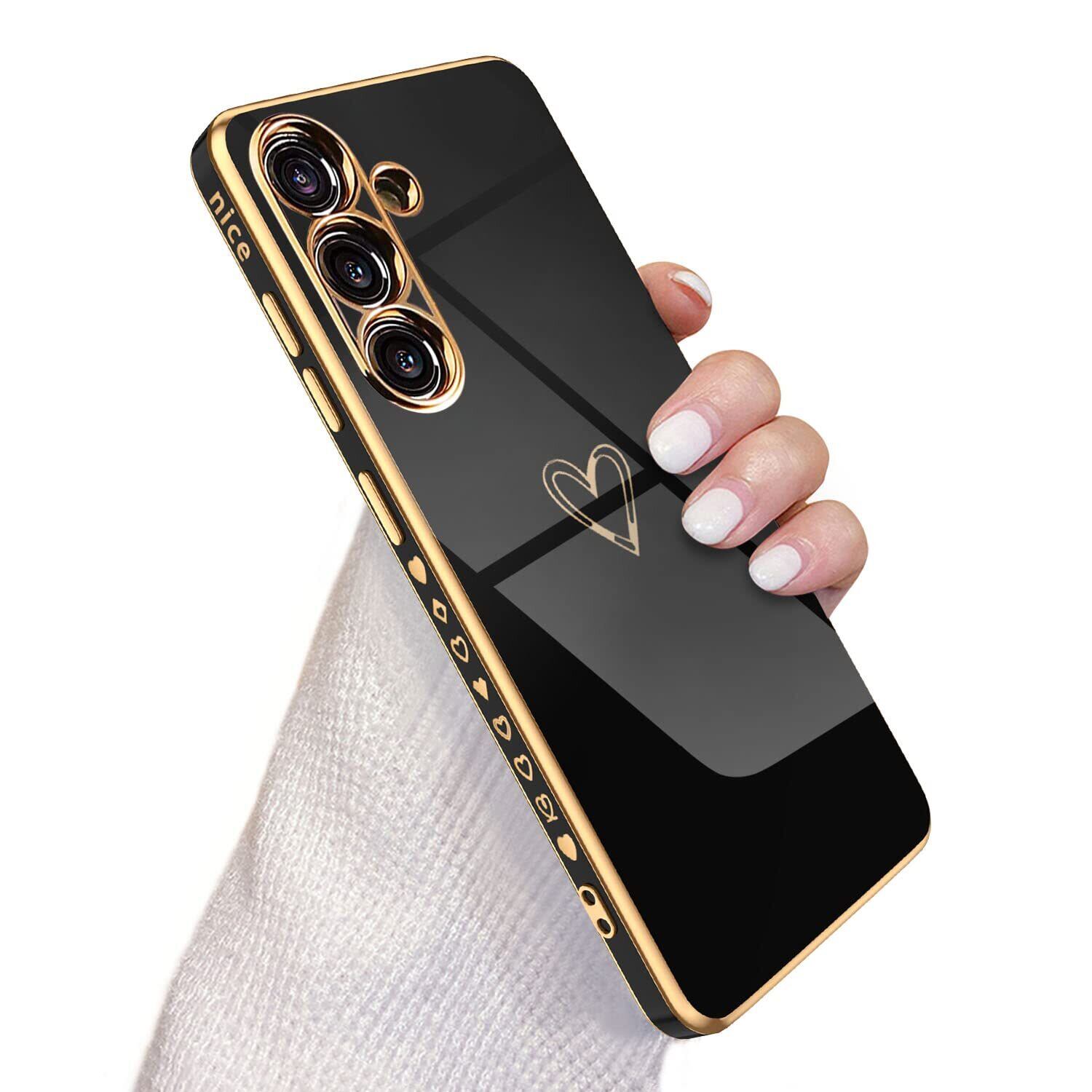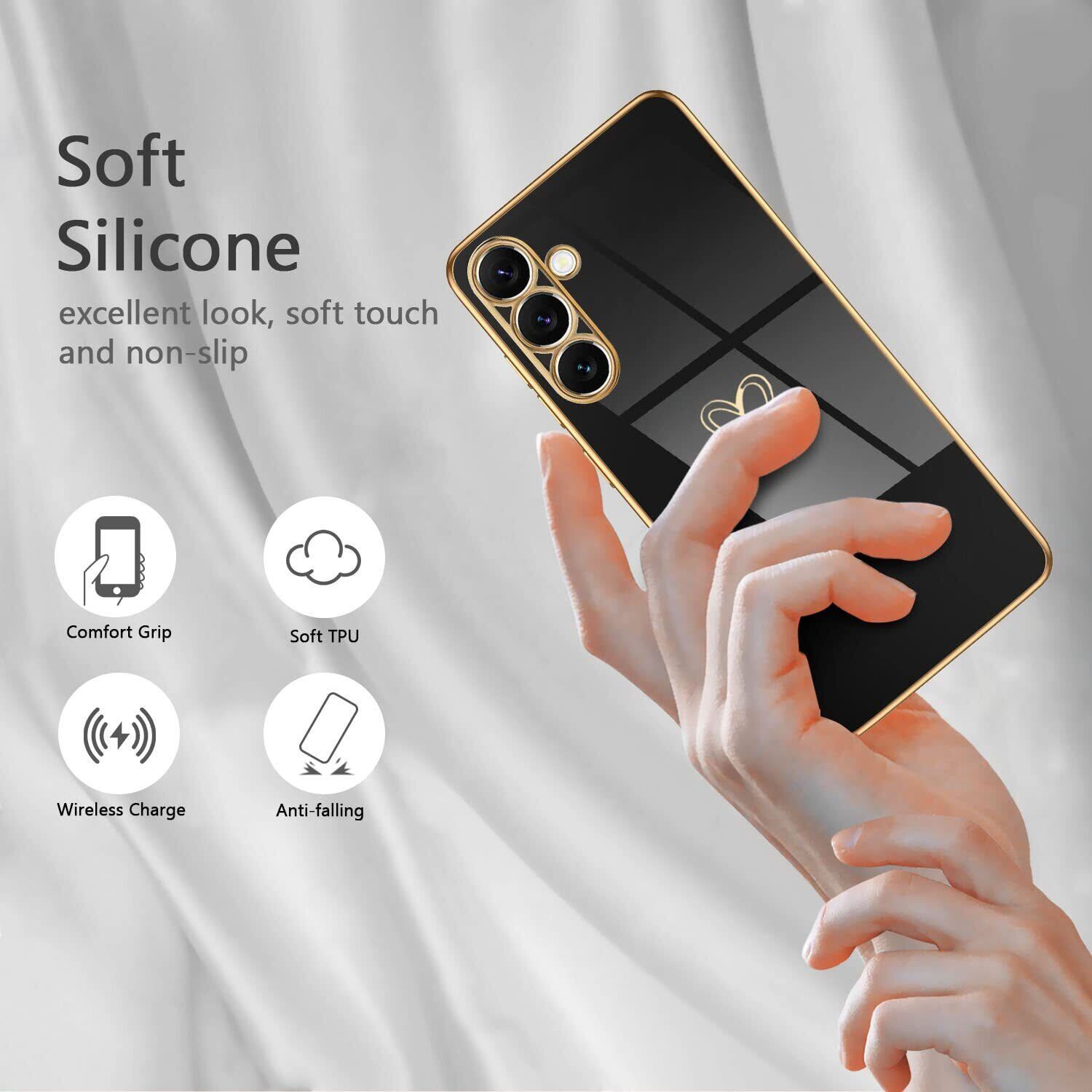 Samsung Galaxy A54 5G ケース SC-53D/SCG21 ケース かわいい メッキラブハートソフト TPU カバー 女性 人気 軽量 スマホケース レンズ保護 落下防止 カバー ワイヤレス充電対応 携帯電話ケースギャラクシーA54用カバー - ブラック