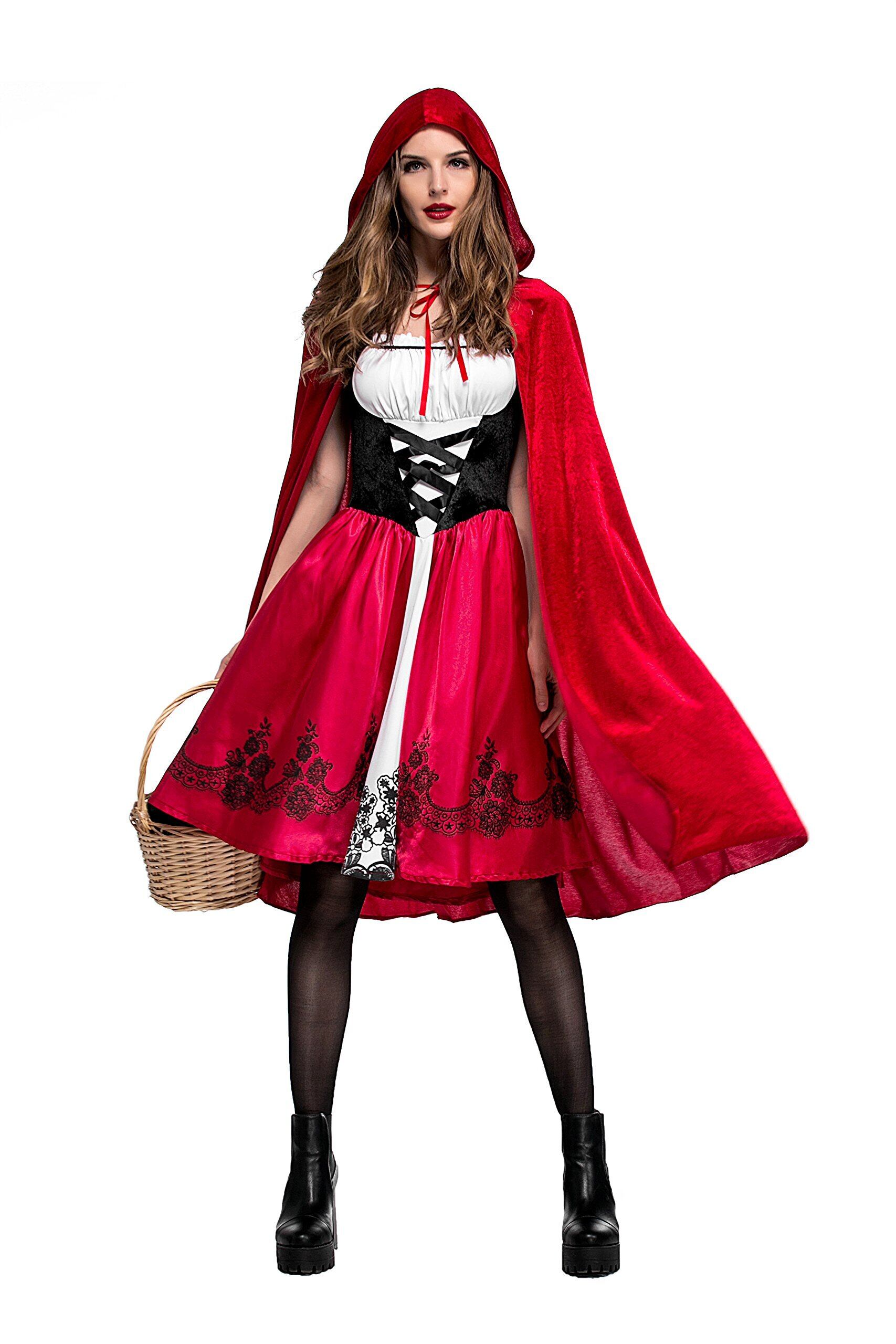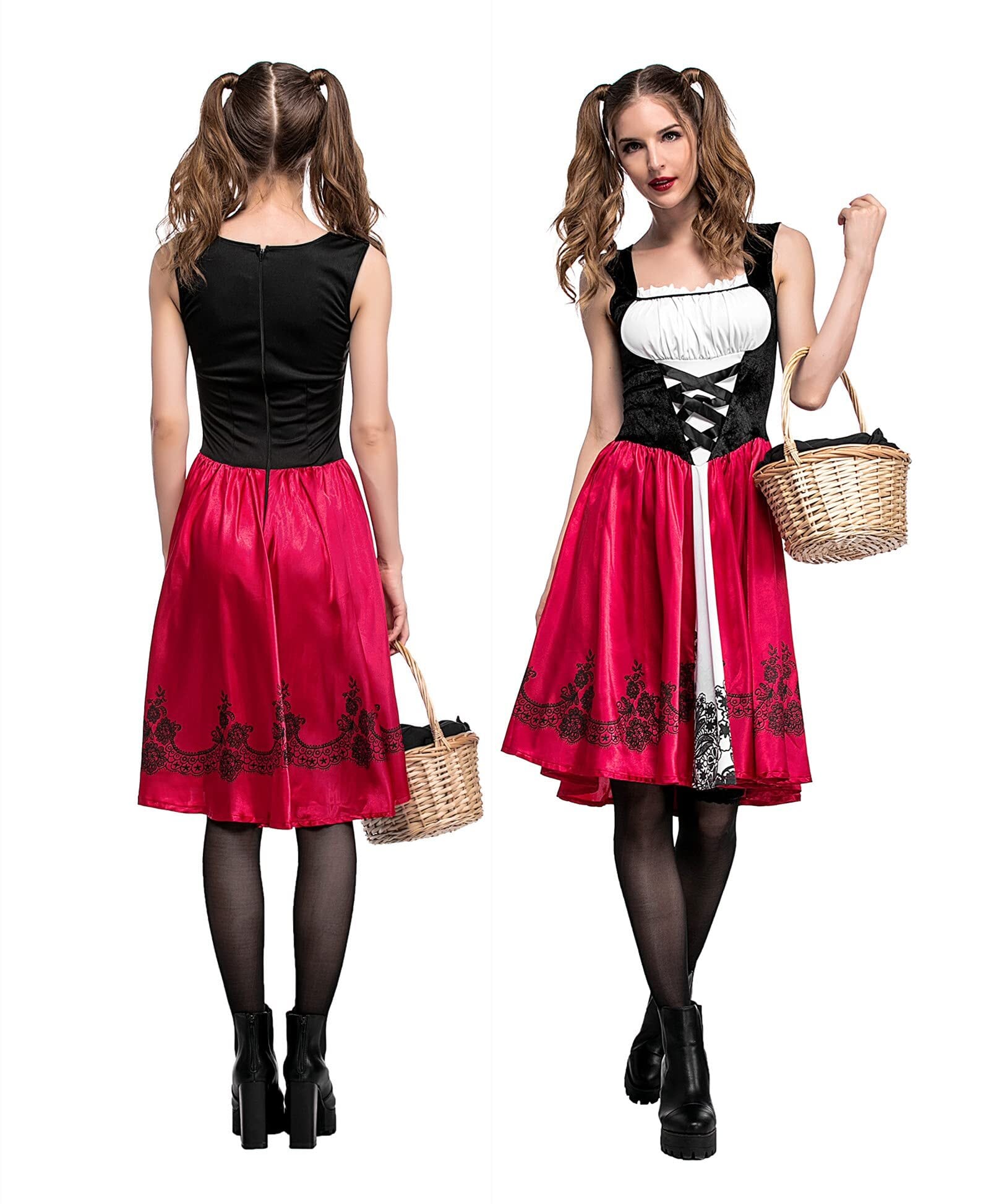 [JUNDOMECY] ハロウィン コスプレ 赤ずきん風 豪華 綺麗 赤ずきん メイド服 制服 仮装 赤ずきんちゃん 大人用 レディース性用 パーティー 舞台 イベント 演出服 (S)