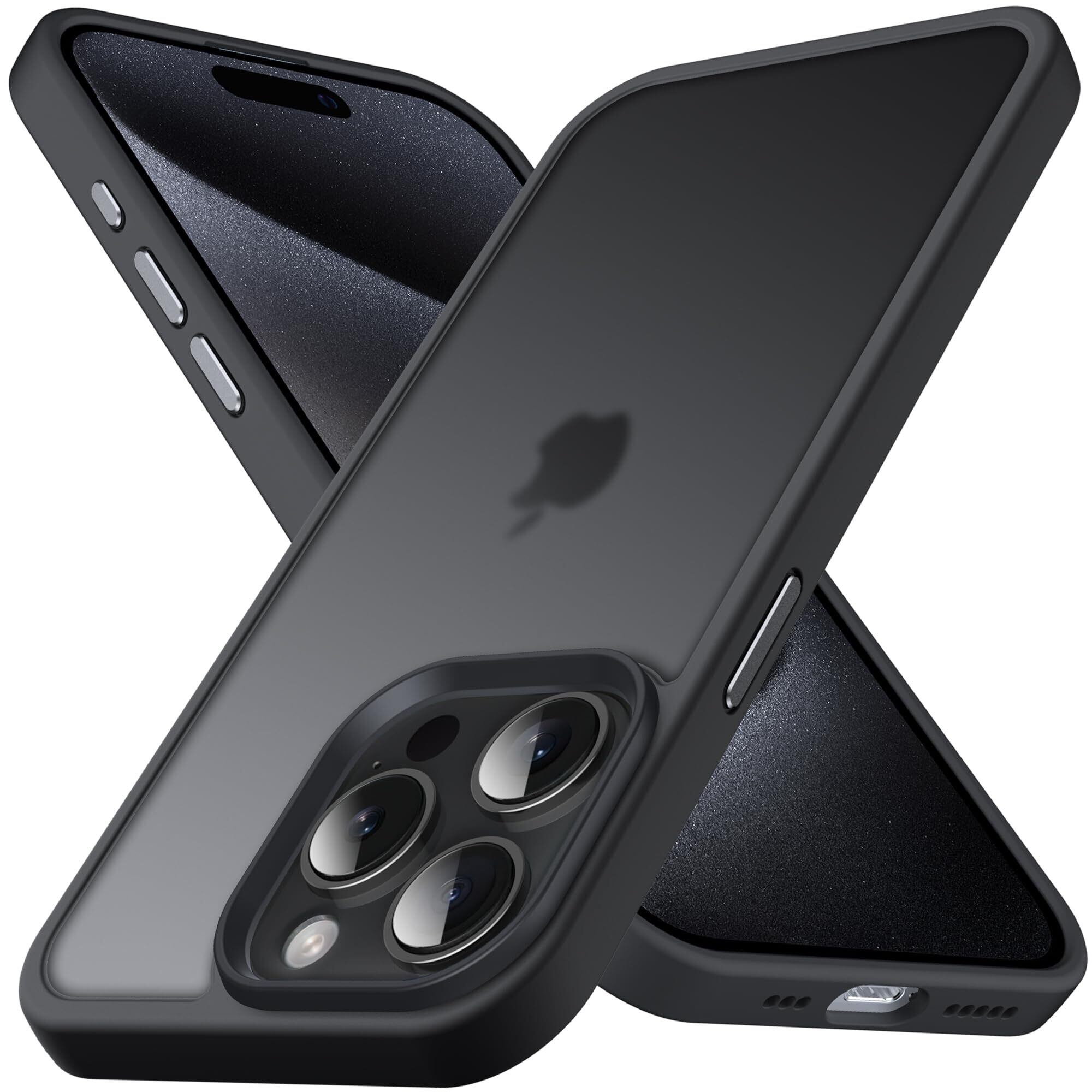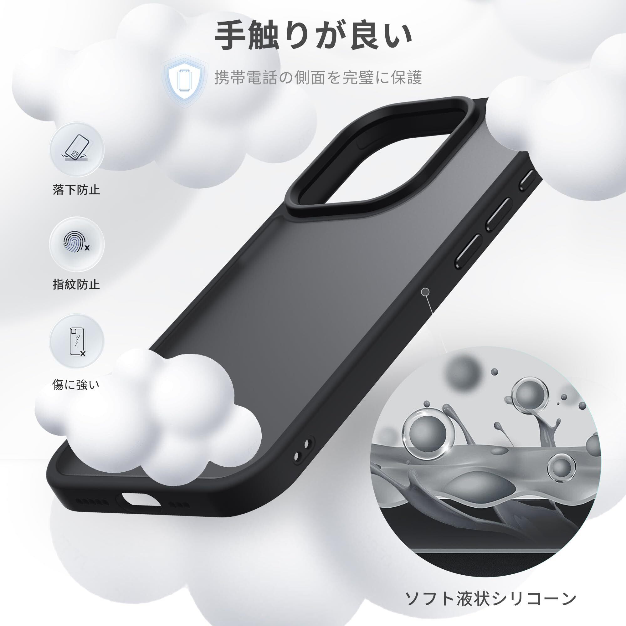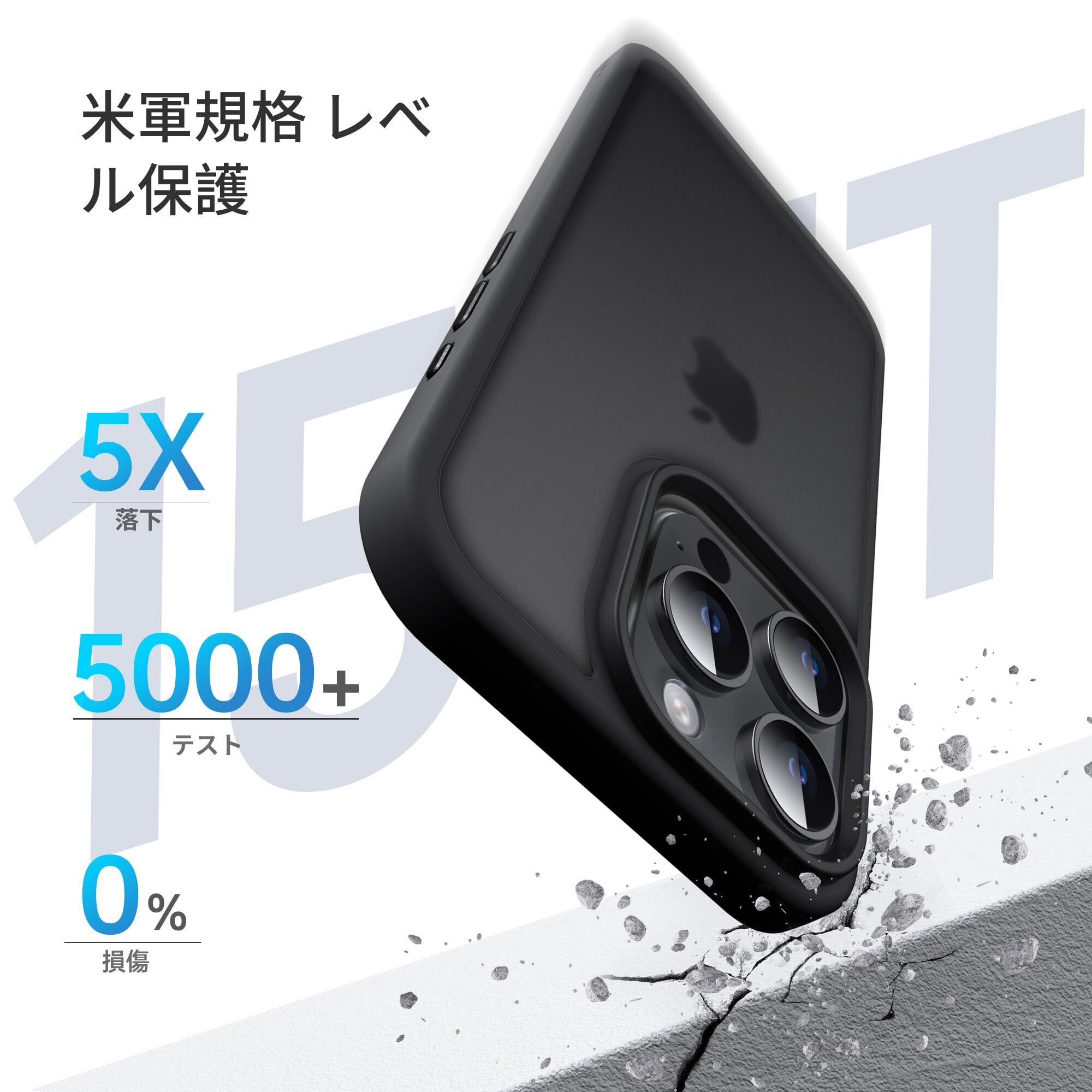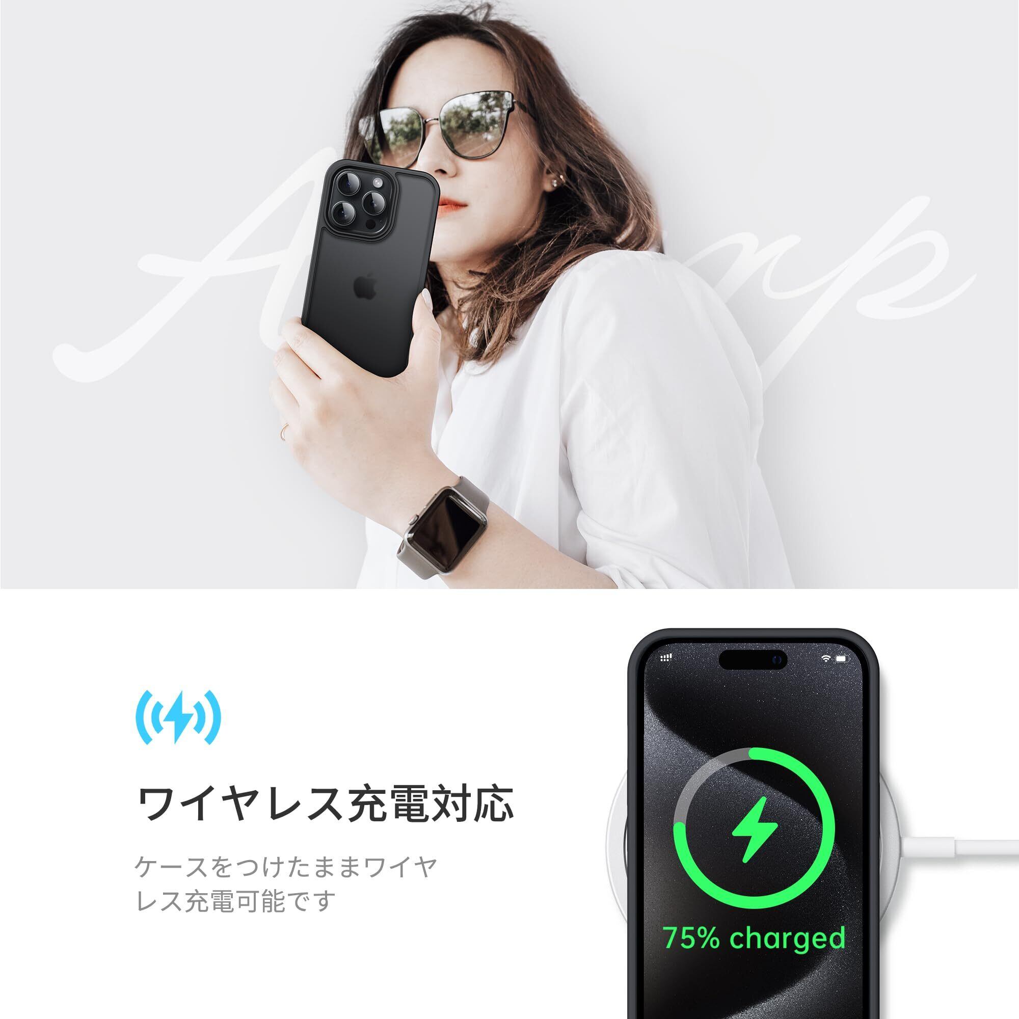 Anqrp iPhone 15 Pro 用 ケース 半透明 耐衝撃 滑り止め 米軍MIL規格 指紋防止 マットケース ストラップホール付き ワイヤレス充電対応 スマホケース アイフォン 15 プロ カバー 6.1インチ ブラック