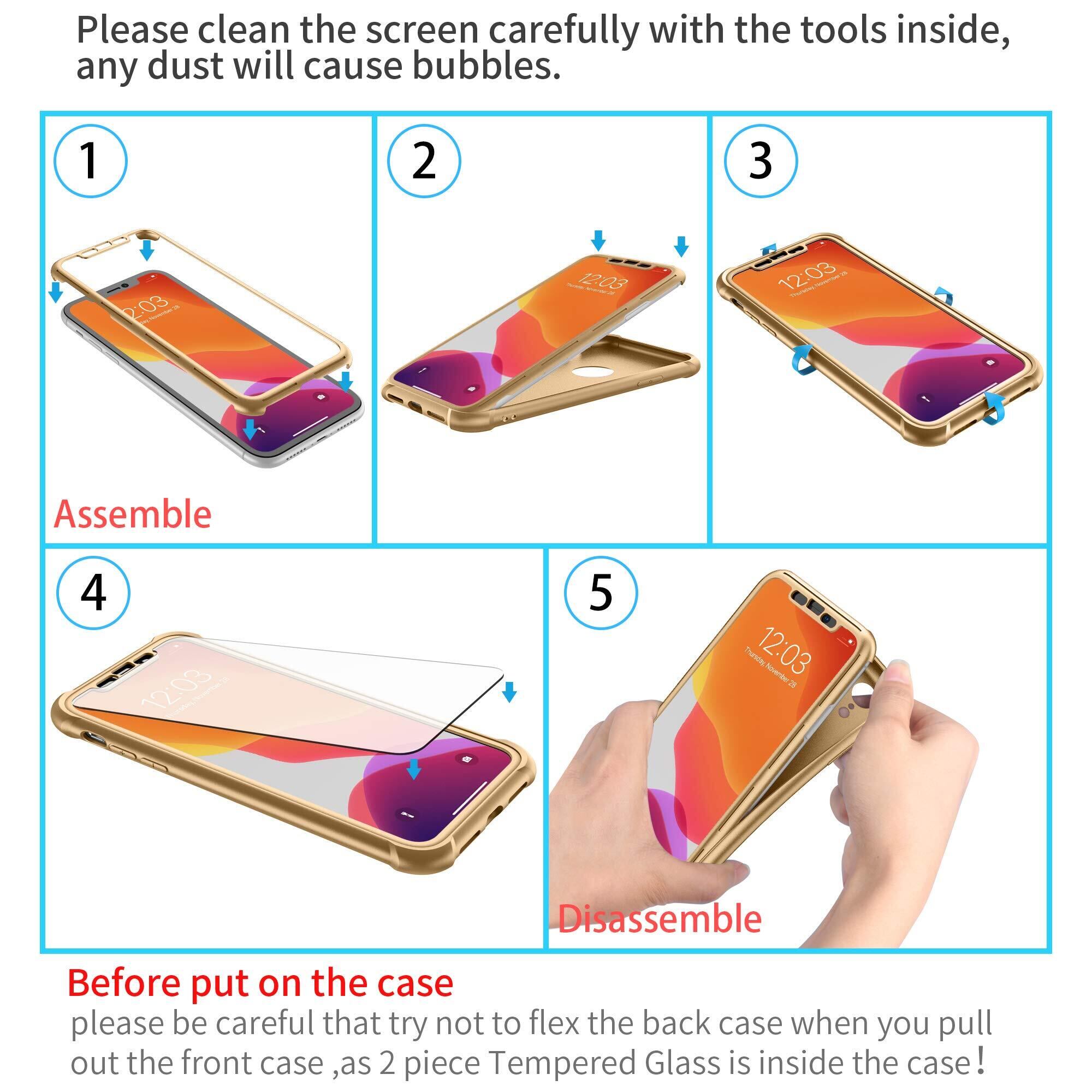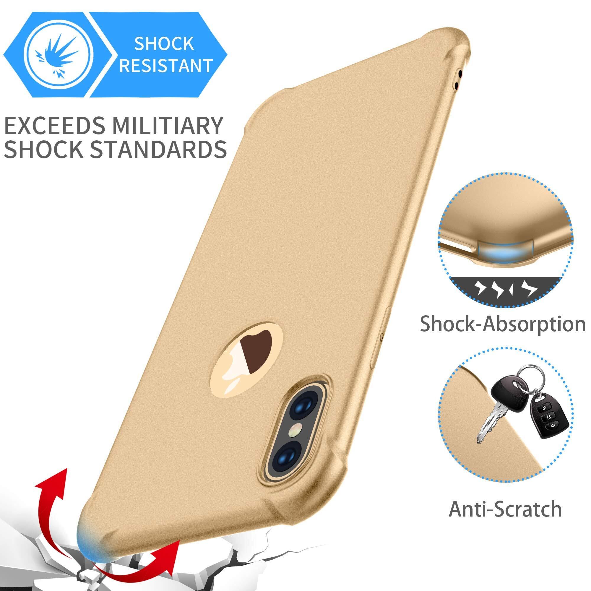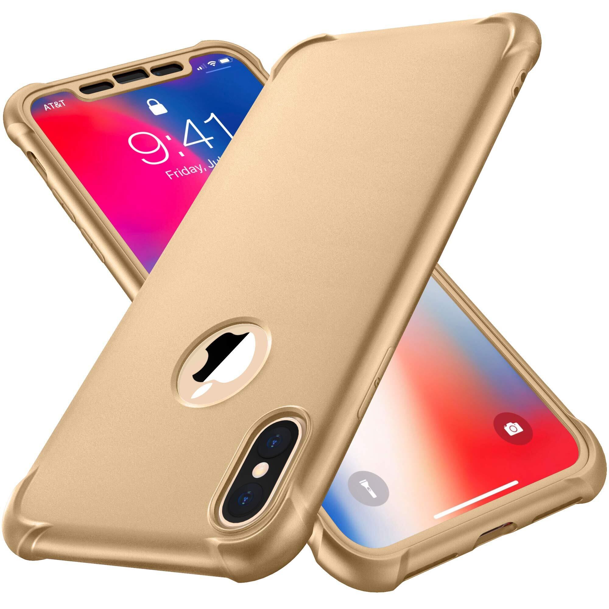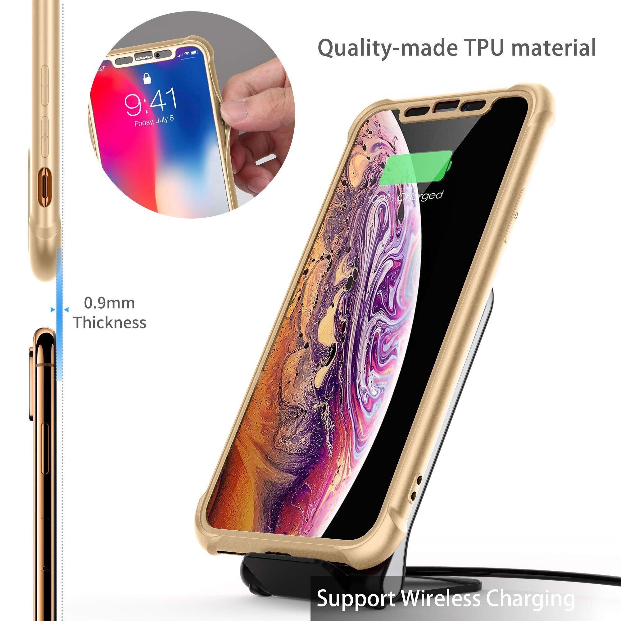 iPhone Xケースと互換性があります [2 x強化ガラススクリーンプロテクター]付きiPhone XSケース 360°全身耐衝撃ケース超薄型ハードPCシリコンケースカバーiPhone X/XS 5.8 ''(ゴールド)