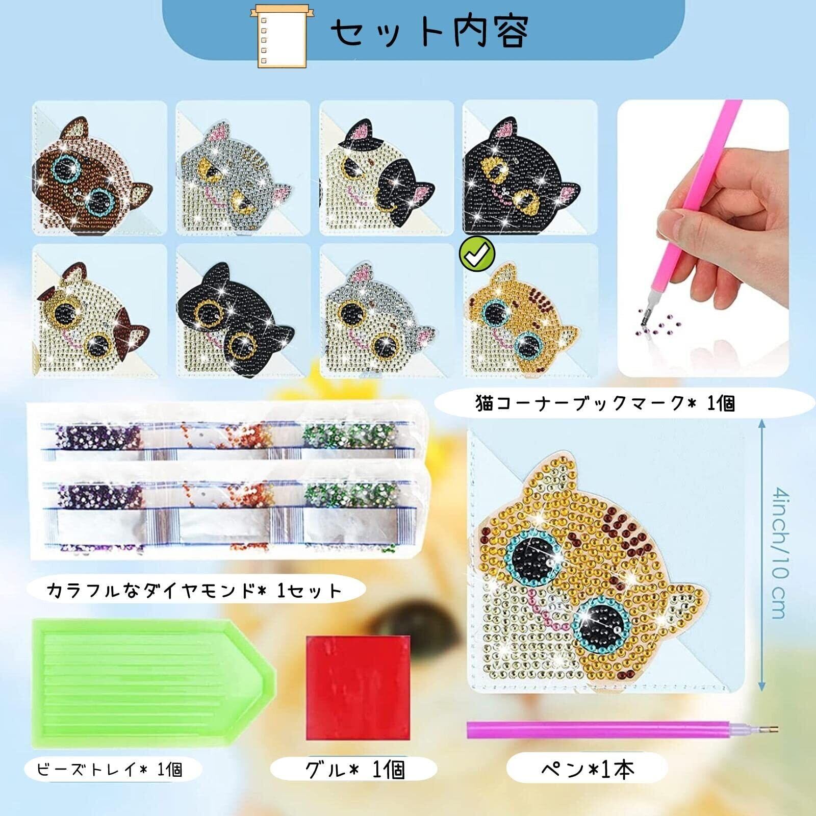 ダイヤモンドアート コーナーブックマーク キット 四角いビーズアート ダイアモンドアート セット DIYダイヤモンドペインティング 5Dダイヤモンド塗装キット 手芸キット 初心者、大人、子供用 人気 手作りアートクラフト用品 (猫3)
