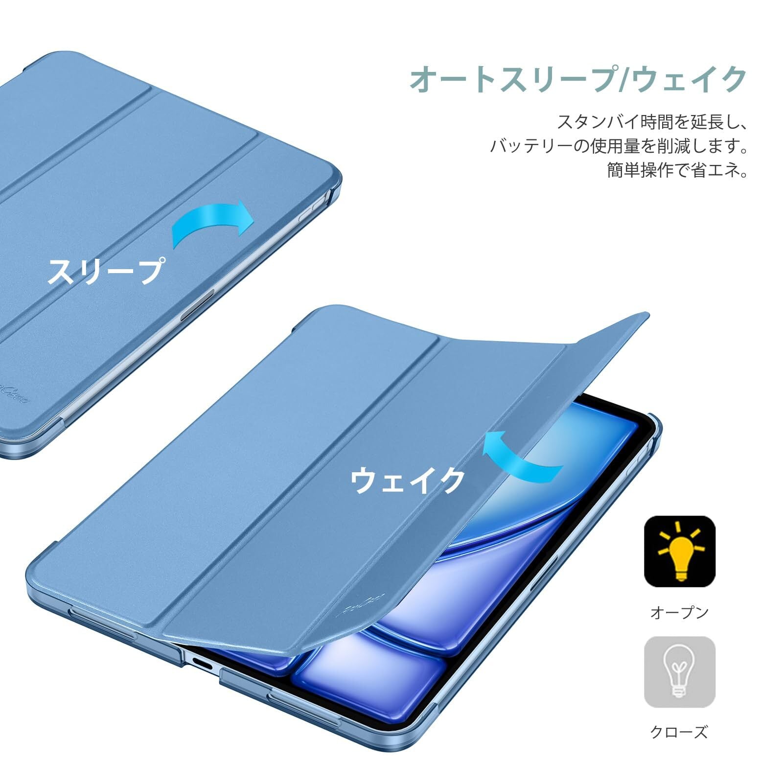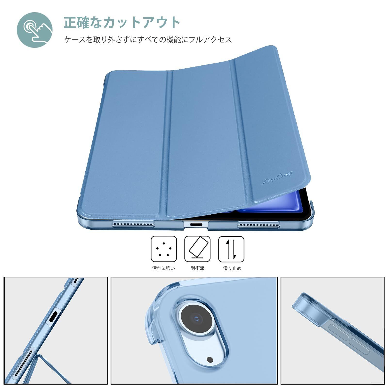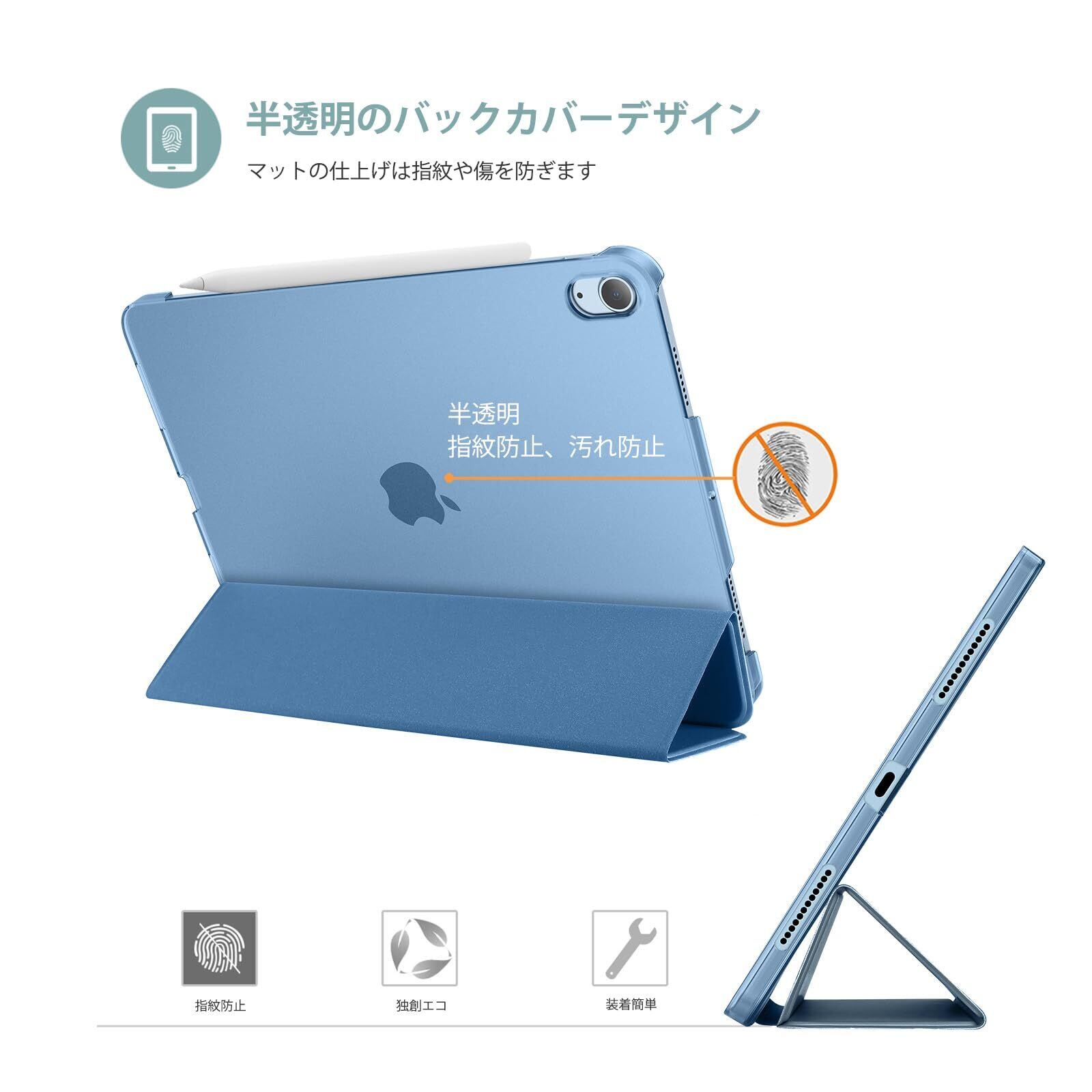 ProCase iPad Air 11インチ ケース M3 (2025) / M2 (2024) / iPad Air 第5世代 / 第4世代 軽量 スタンド 三つ折り フォリオ保護ケース 半透明バックカバー Apple Pencil 2対応 対応端末:iPad air 11インチ M3 (2025)、M2 (2024)、iPad Air5 2022、Air4 2020 - ブルー