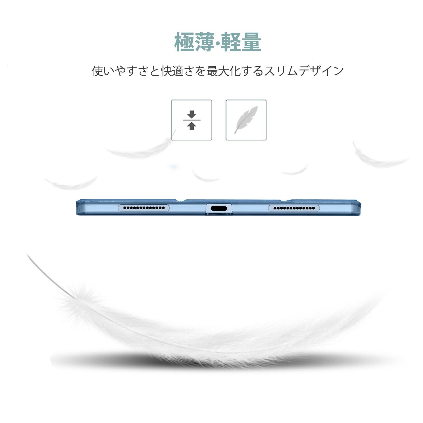 半透明のつや消し背面カバーは、耐衝撃で指紋や傷から保護しながら、iPad本来の美しさをそのまま活かせます。