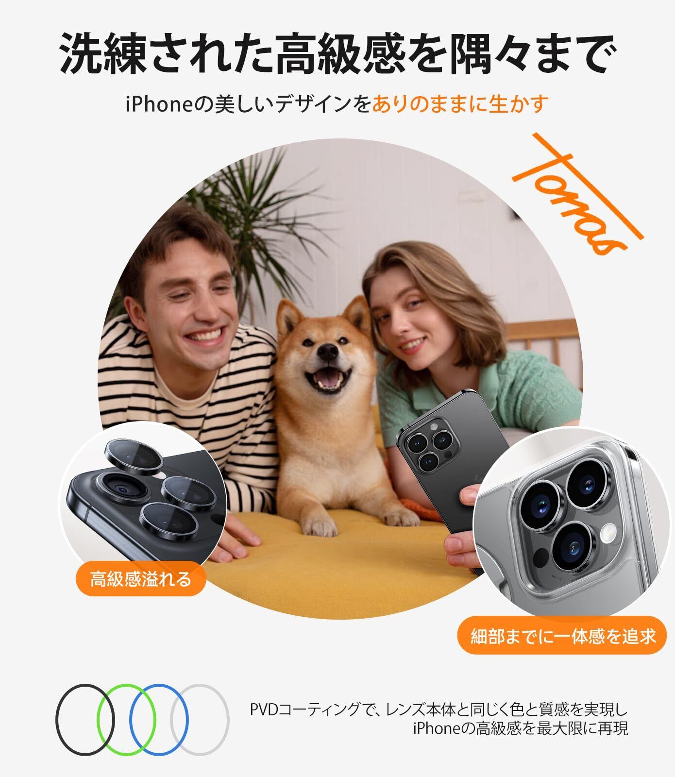 【あらゆるケースにピッタリ!貼りやすい!】iPhoneのカメラサイズを元にし、精密加工で作られた独立設計のiPhone 15Pro・15Pro Max用レンズフィルムでは、あらゆるケースに干渉しなく、お気に入りのケースを好きなだけ選べる。組み合わせて使用し、シンプルな美しさで、あなたのセンスをさり気なく表現!押してはめ込み、外し、終了!驚くほどほどの貼りやすい!成功率100%、初めてフィルムを貼る素人でも、楽に貼り付けできる。さらに、Tora-Airless特殊粘着剤を採用し、レンズ本体とピッタリ密着!