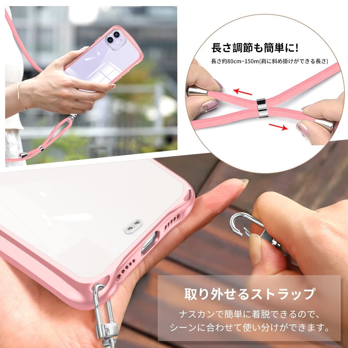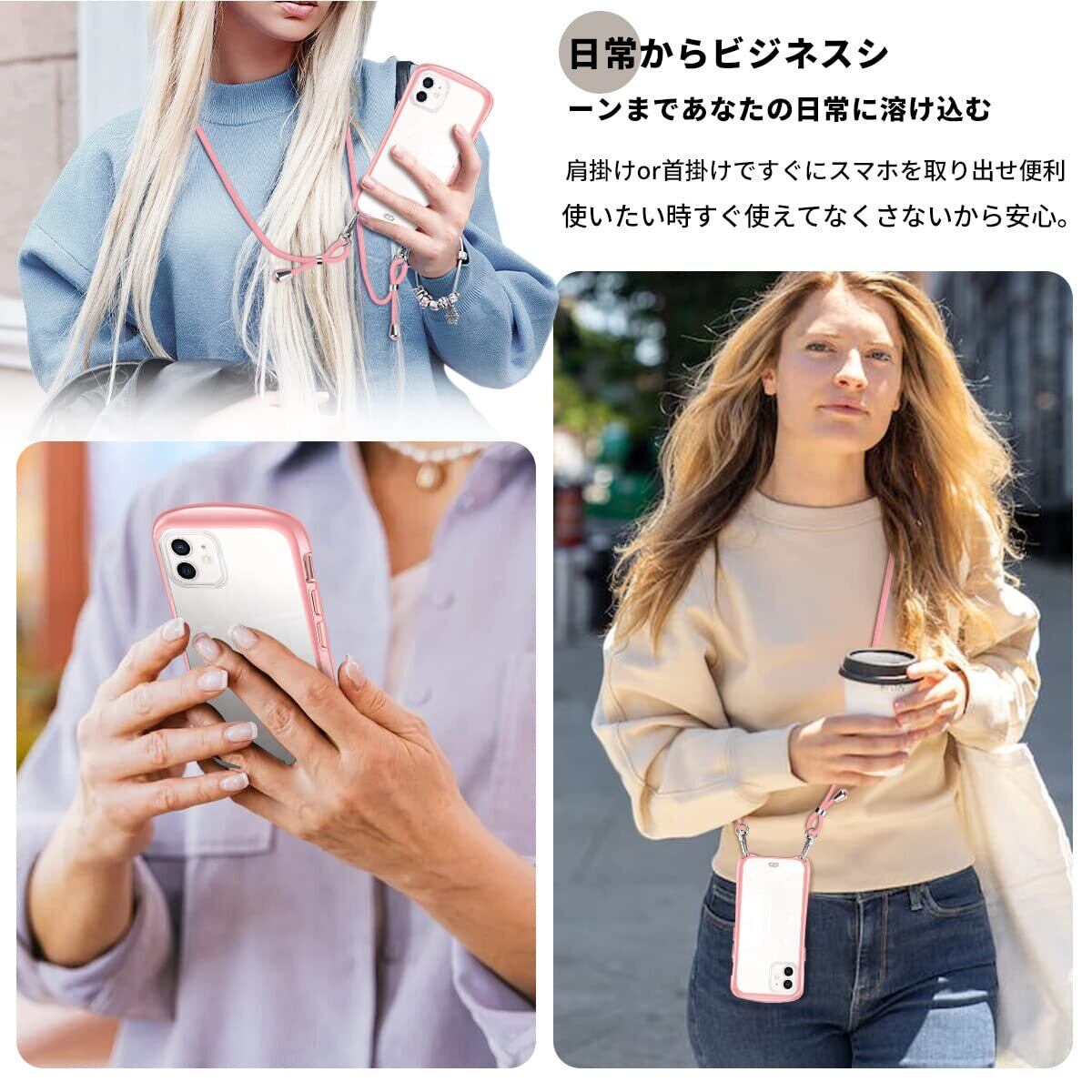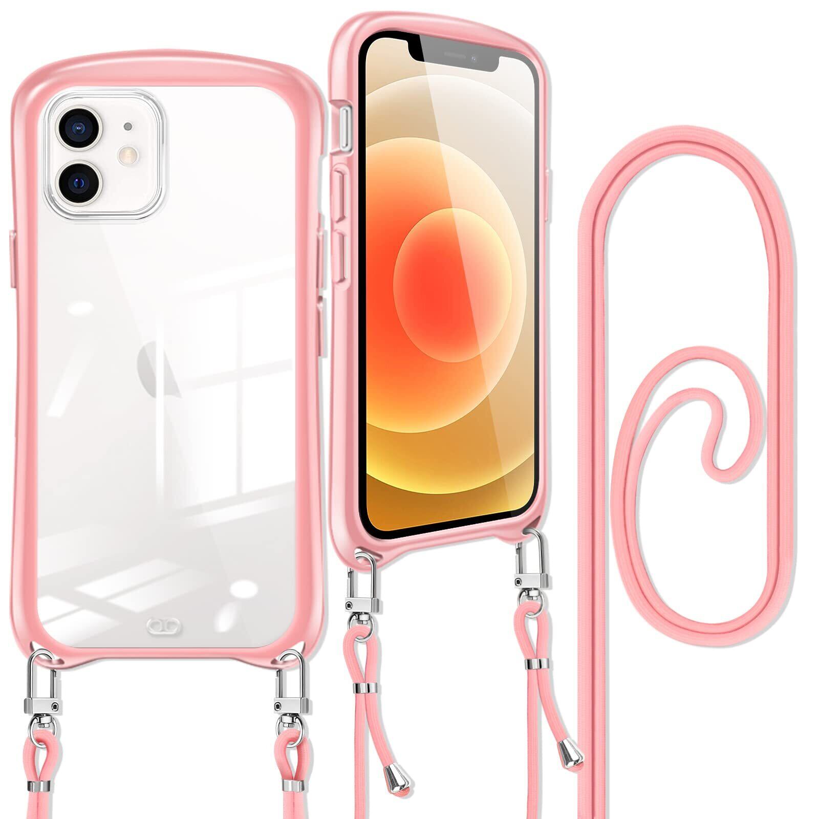 iPhone12 Pro ケース ショルダー クリア iPhone 12 カバー 肩掛け 首掛け 斜めかけ iPhone12Pro iPhone12 縄掛けケース 透明 可愛い かわいい 韓国 ストラップ付き クロスボディ 12プロ アイフォン 12Pro/12 スマホケース ピンク