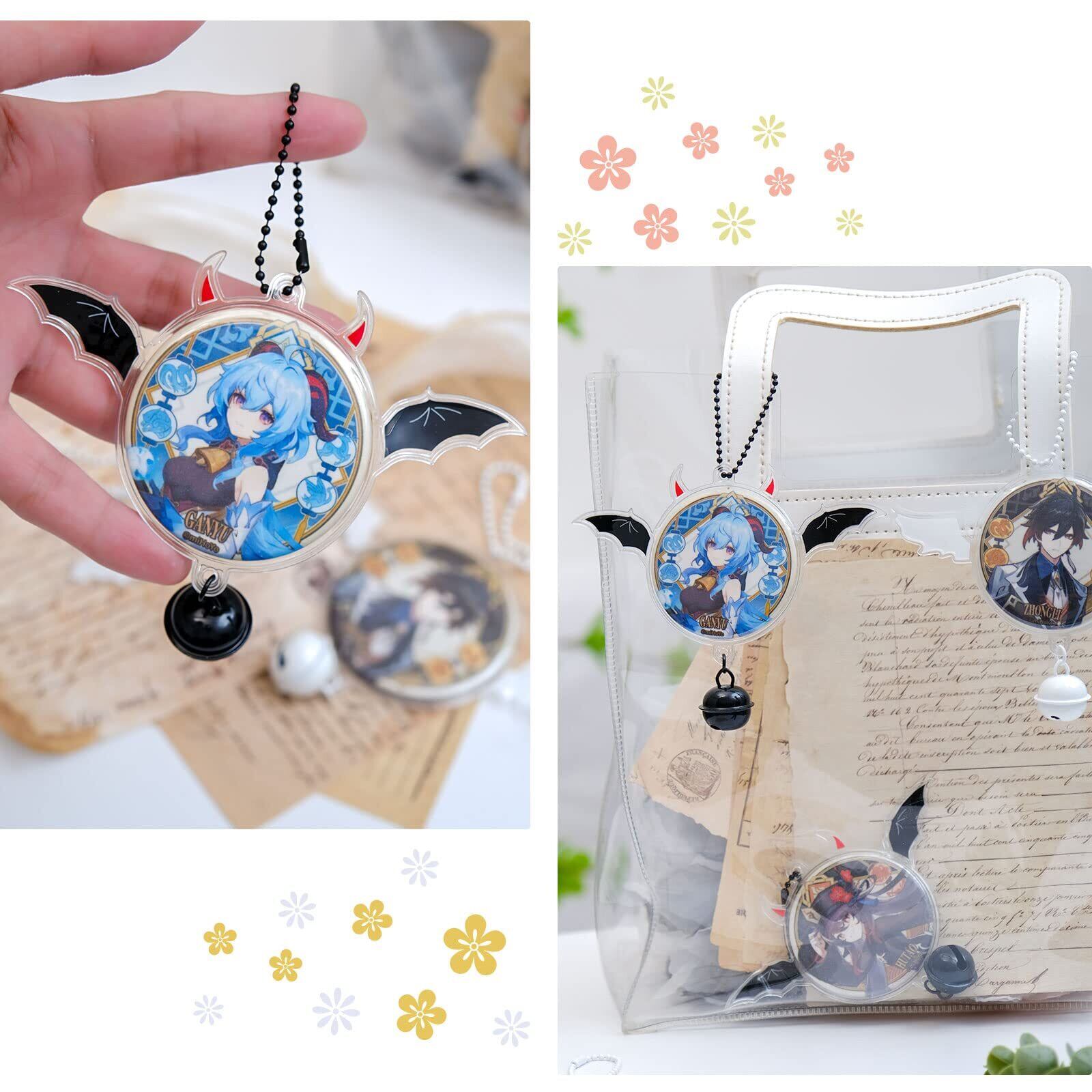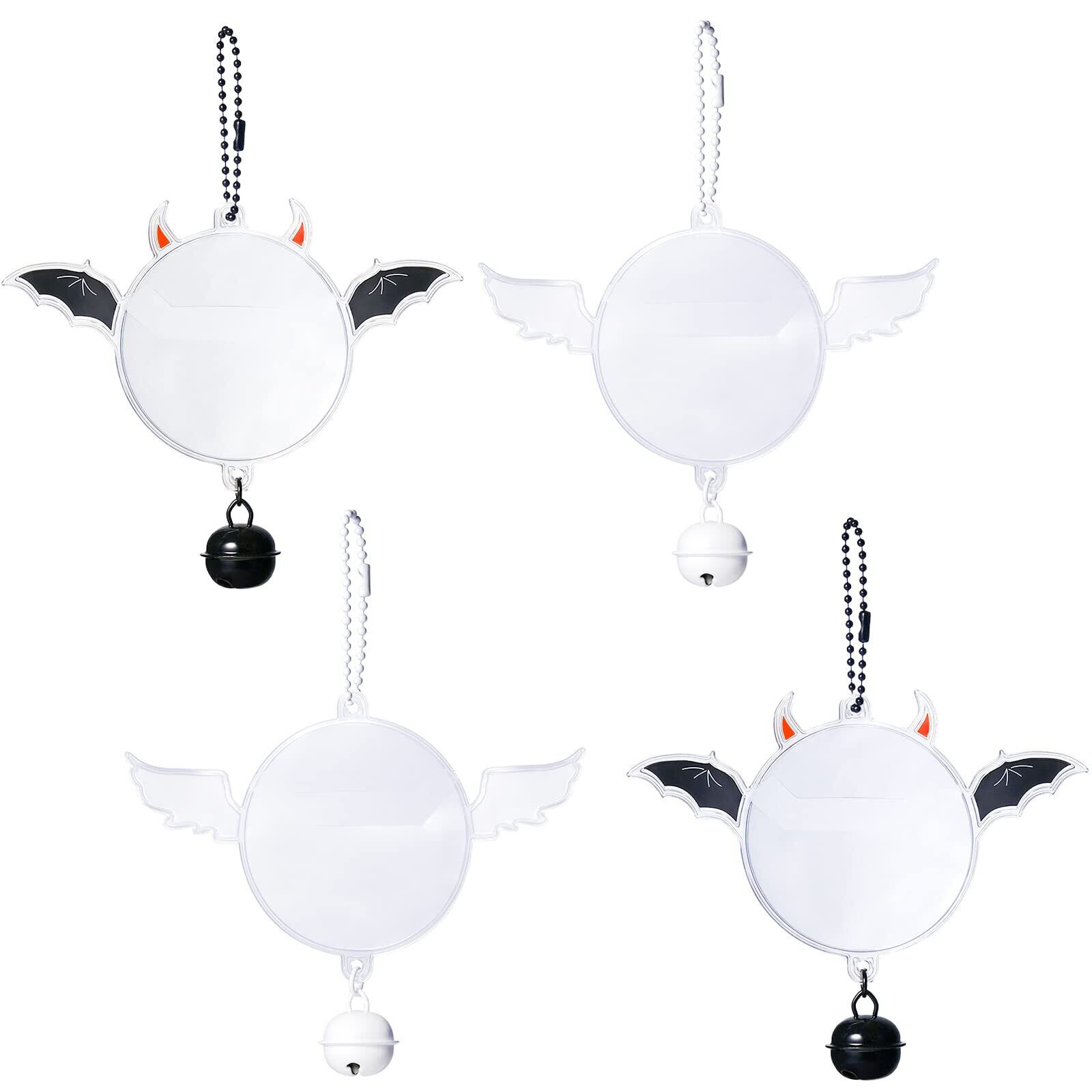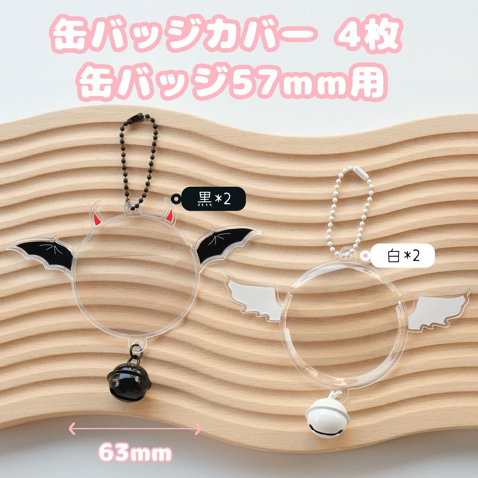 【セット内容】「天使」*2枚(缶バッジ57mm用)、「悪魔」*2枚(缶バッジ57mm用)。 合計4枚。材質:PVC(缶バッジカバー) + 金属(ベル)