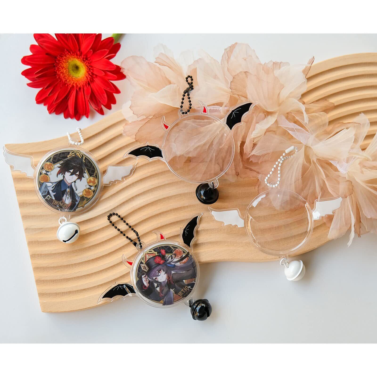 缶バッジカバー キーホルダー式 57mm対応 4枚入り 透明 高い透明性 缶バッジ 収納 キーホルダー 痛バッグ 痛バ 推しキャラ グッズ (天使と悪魔-4枚セット)