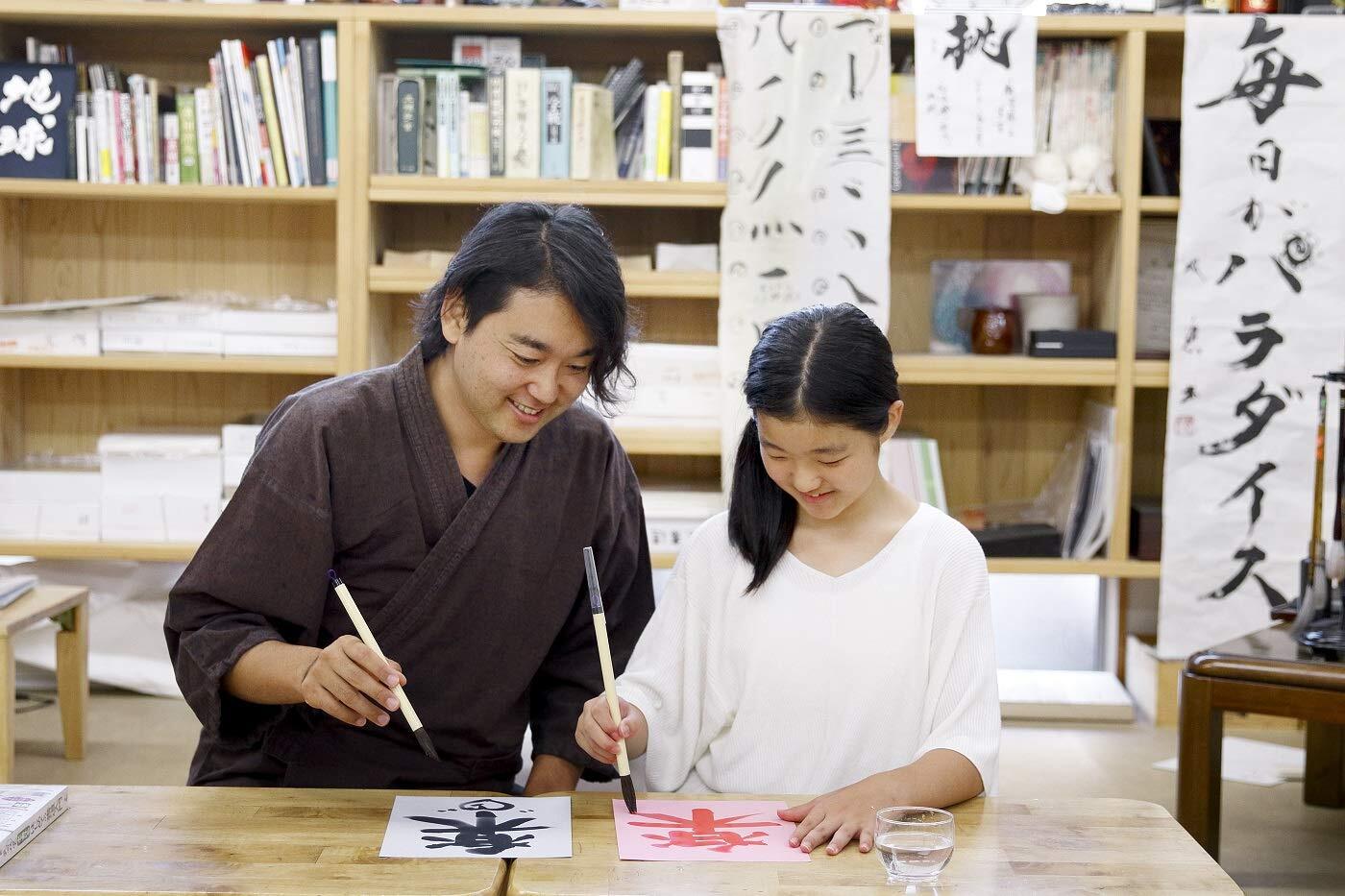 筆と水筆用紙、書道家・武田双雲のお手本帳がセットになっており、書道レッスンを自宅で体験できる。