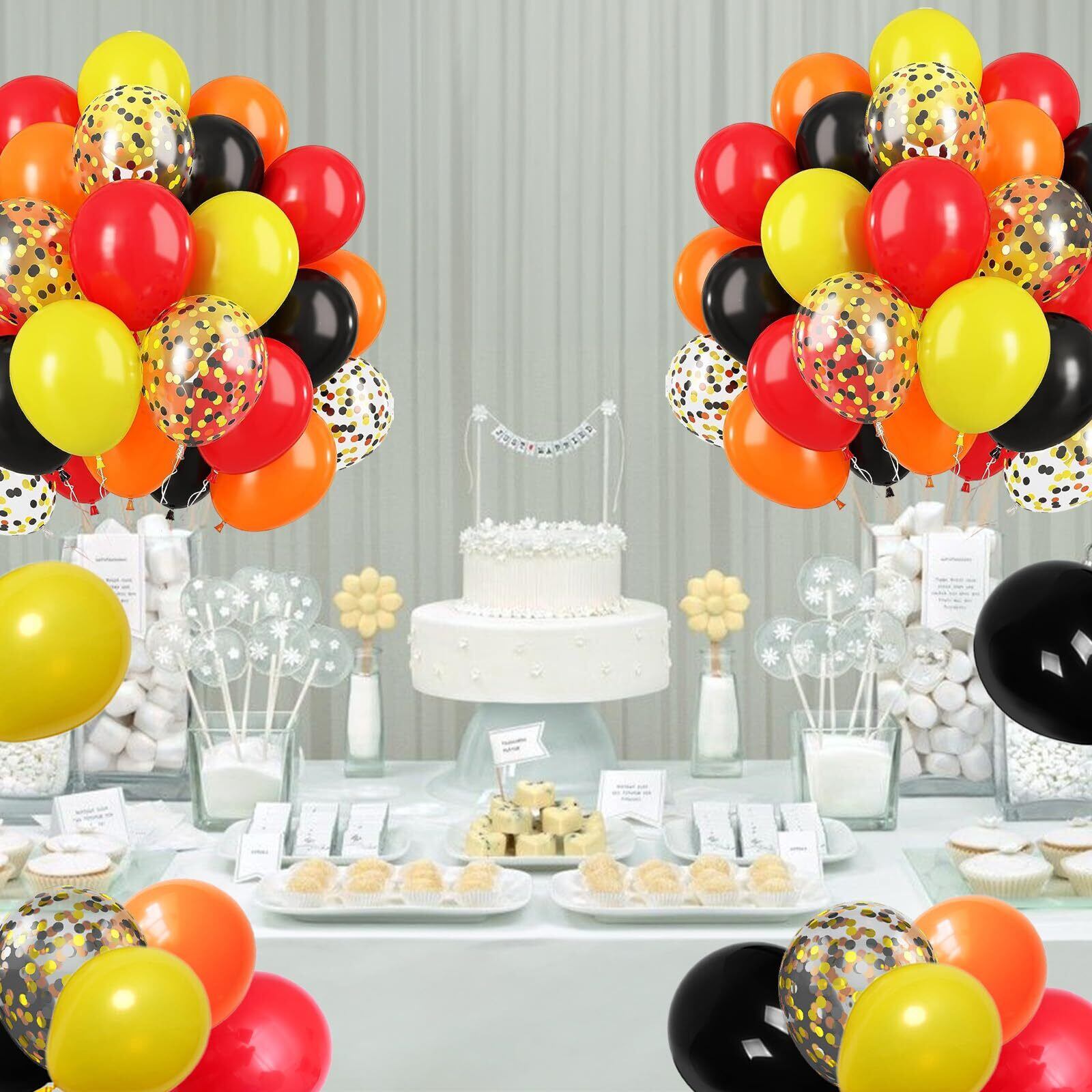 【バルーンセット内容】バルーン50個(カラー:ブラック、レッド、イエロー、オレンジ)、バルーンチェーン1巻、粘着シール1枚、リボン1巻。