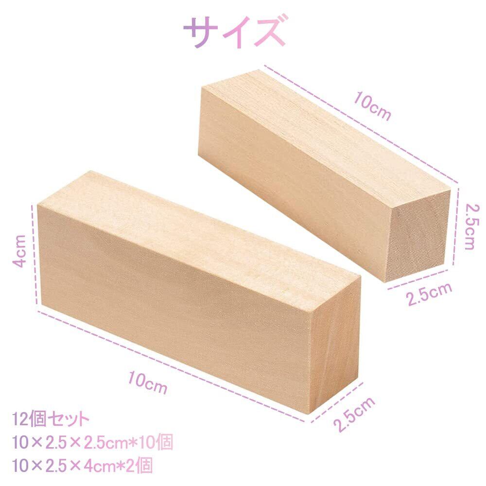 彫刻 木彫りブロック 未仕上げ木製 長方形 立方体ウッド DIY 工芸品用 手彫りモデル 初心者に適用 (12個セット)